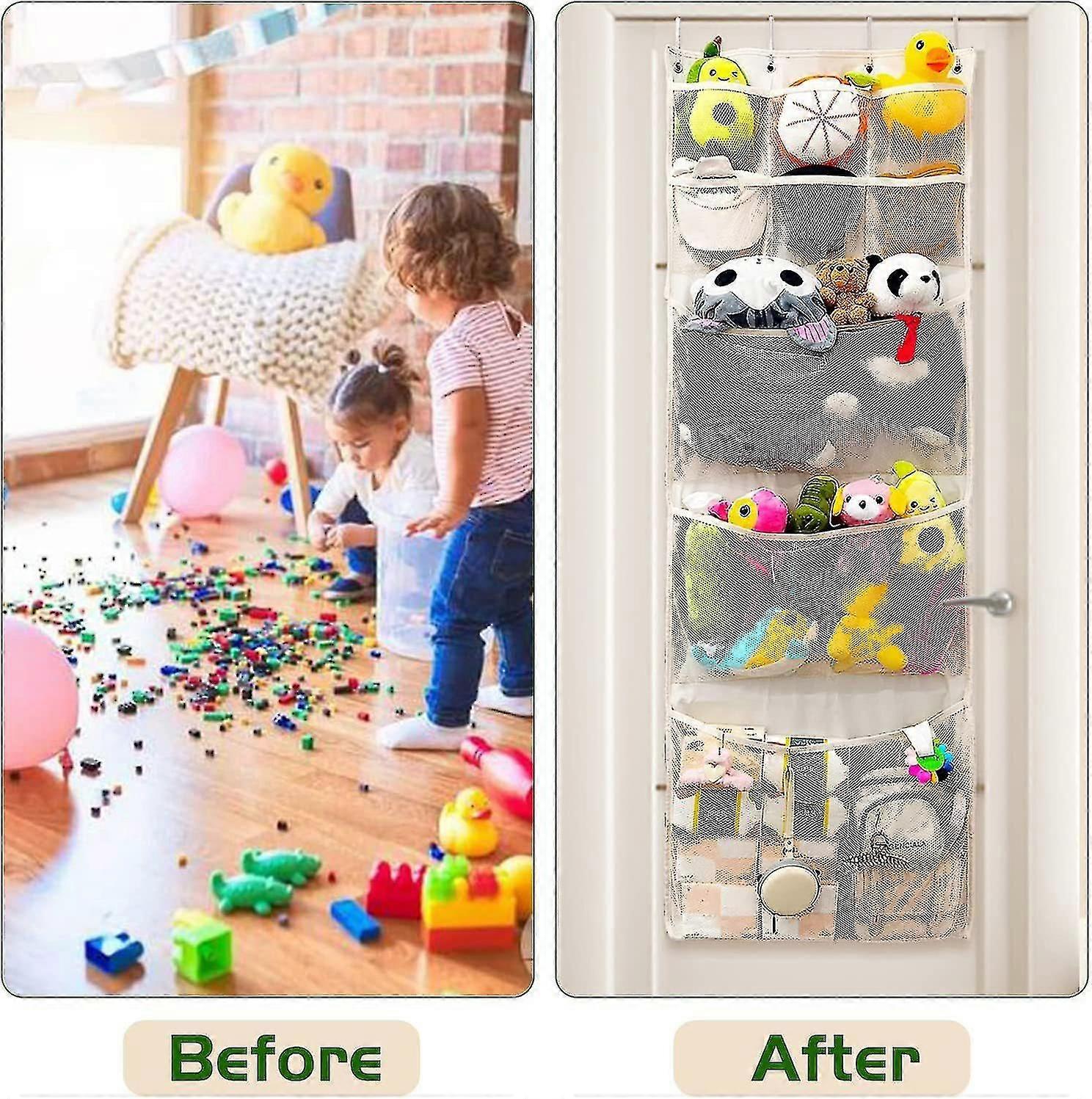 Stuffed Animal Storage Bag Over The Door Stuffed Animals Organizer With 4 Large Pockets Hanging Mesh Bags For Baby Plus-r