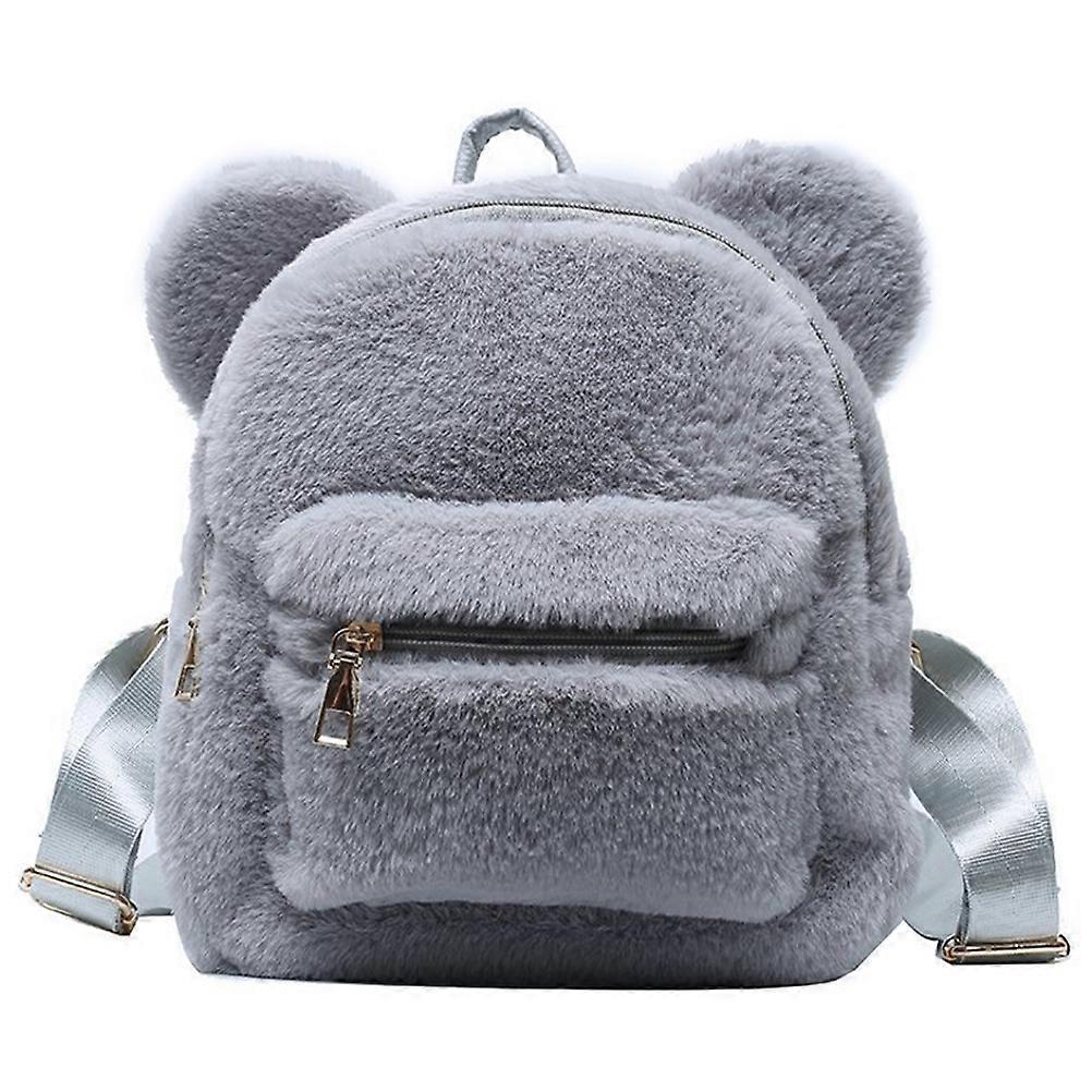 Creative Plush Storage Bag Winter Fluffy Backpack Girls Bear Ear Pattern Backpack