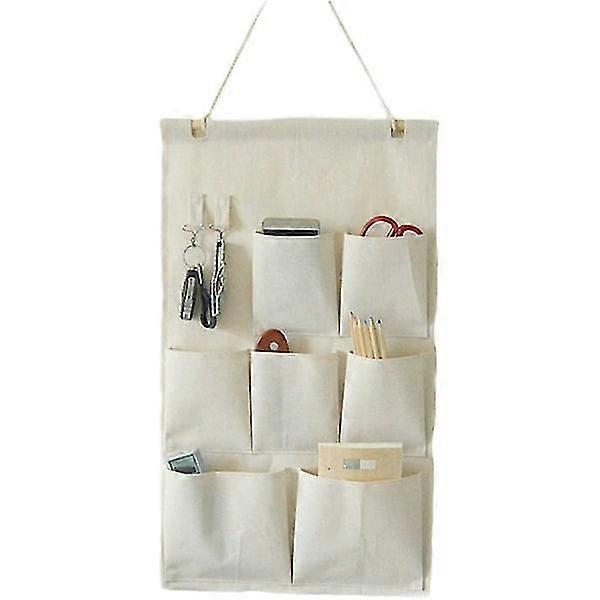 Linen/Cotton Hanging Closet Door Storage Bag with Hooks (Seven Pockets)