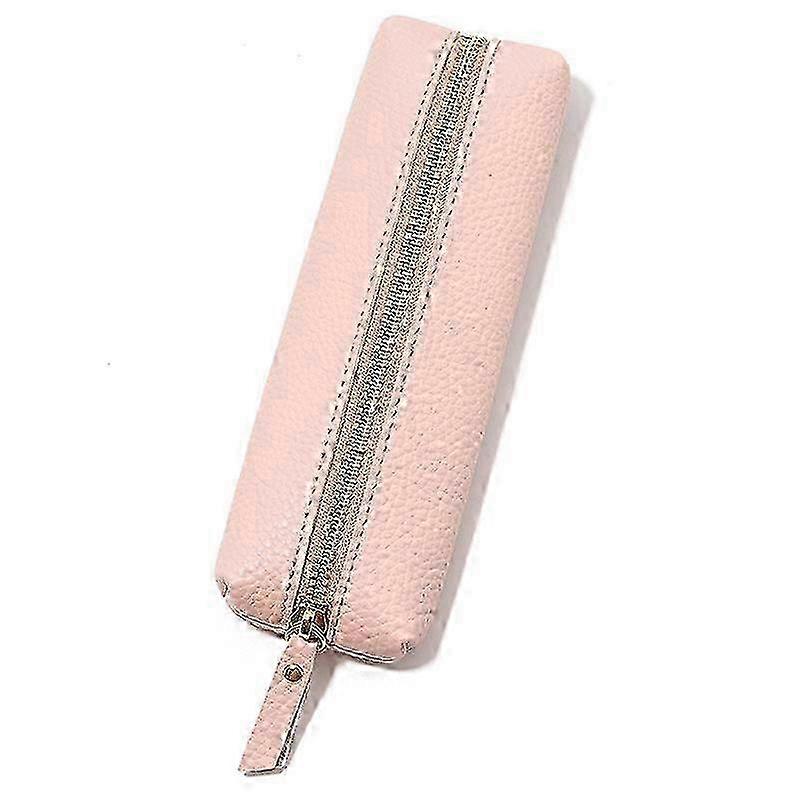 Simple Leather Pencil Case Storage Bag Signature Pen Portable Leak-proof Zipper Stationery Bag (Black/Pink)