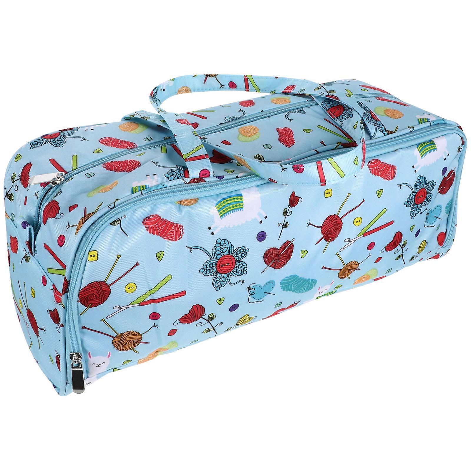 Extra Large Durable Oxford Yarn Storage Bag for Knitting and Crochet – Portable Organizer Pouch for Outdoor Use, Blue Pattern Design