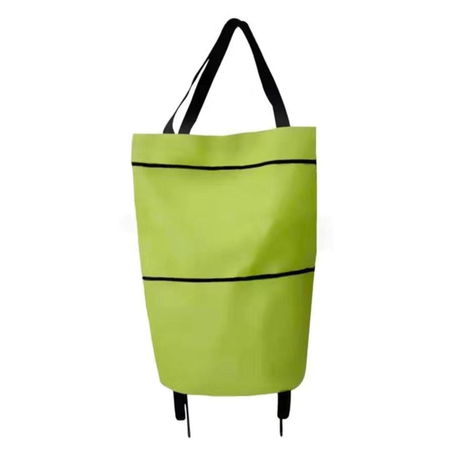 Foldable Wheeled Shopping Bag Green Expandable Oxford Cloth Grocery Cart with Durable Wheels Lightweight Portable Tote