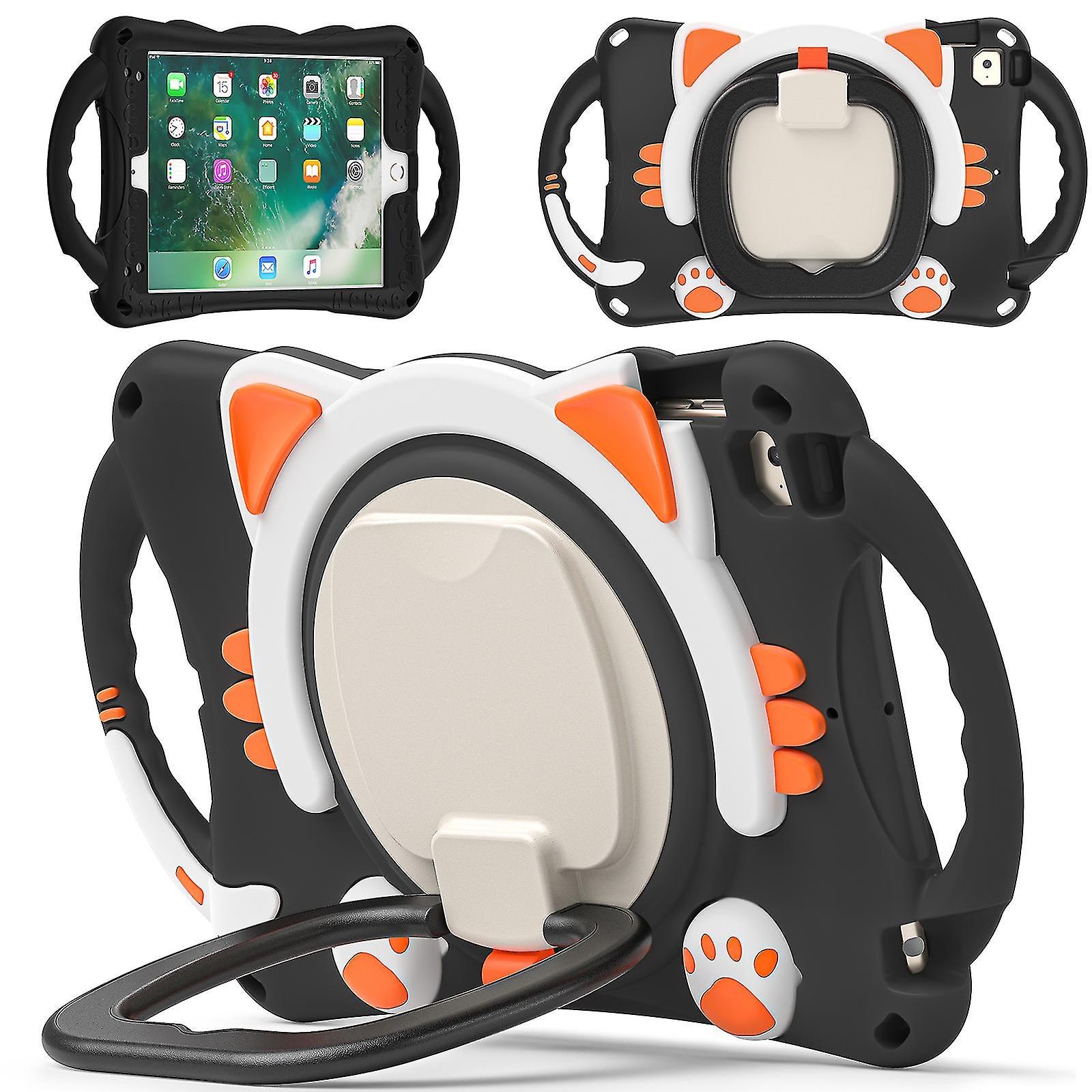 Kid Friendly Cat Design Case For Ipad Mini 1/2/3/4/5 With Big Ring Stand, Two Portable Handle, Shockproof, Camera Protection Cover