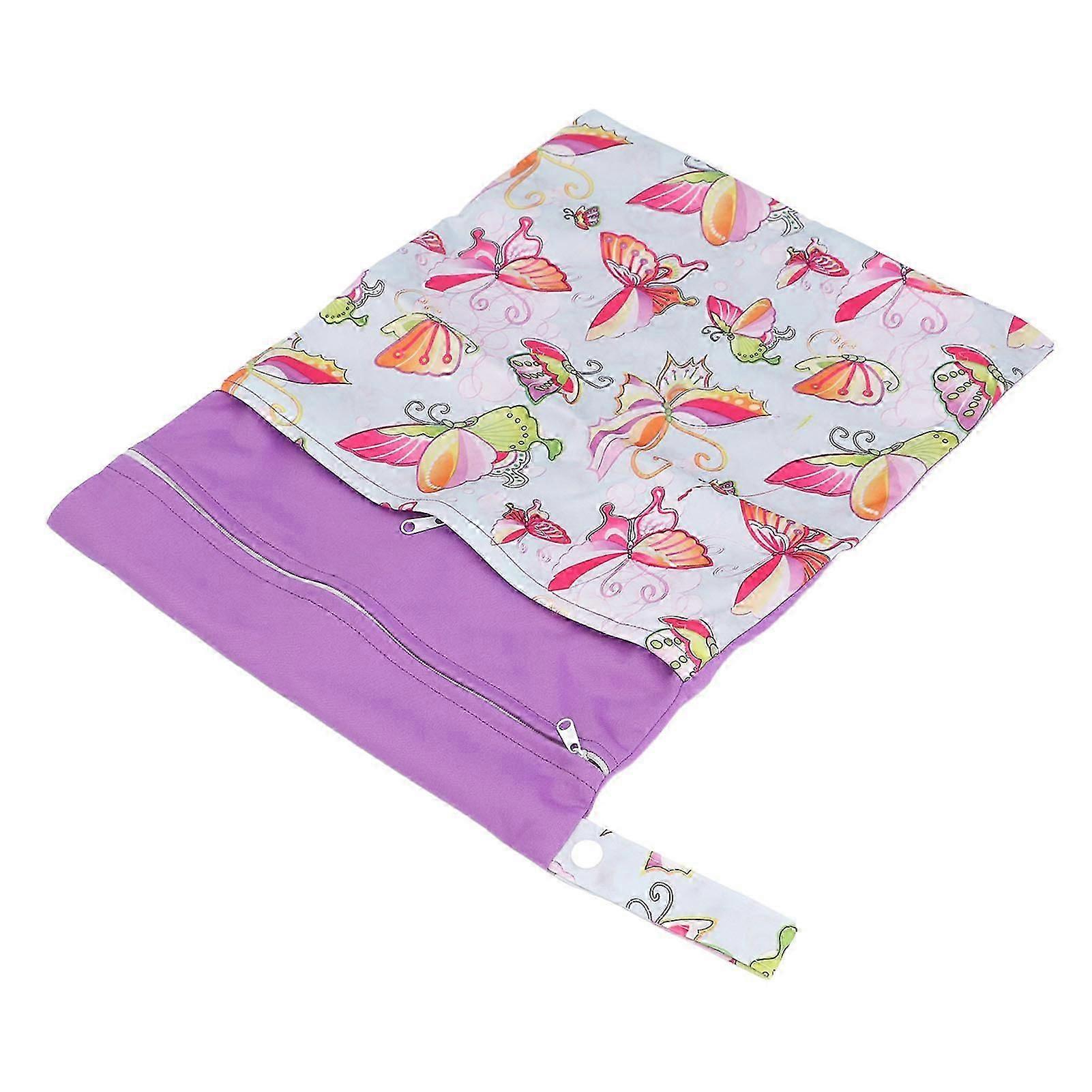 Wet Dry Bag Waterproof Diaper Bag Separated Portable Hanging Bag with Dual Pockets Dual Zippers for Baby Stroller 30 X 40cm Floral T04