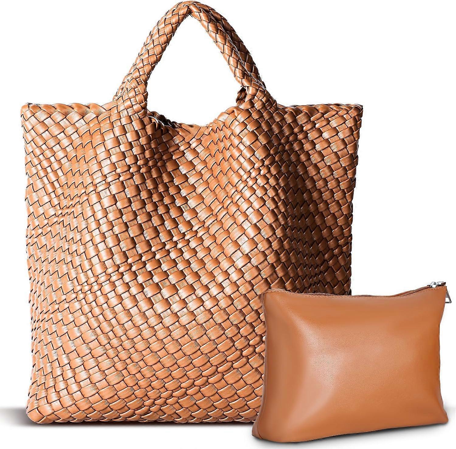 Leather Woven Bag for Women, Summer Beach Travel Handbag with Purse