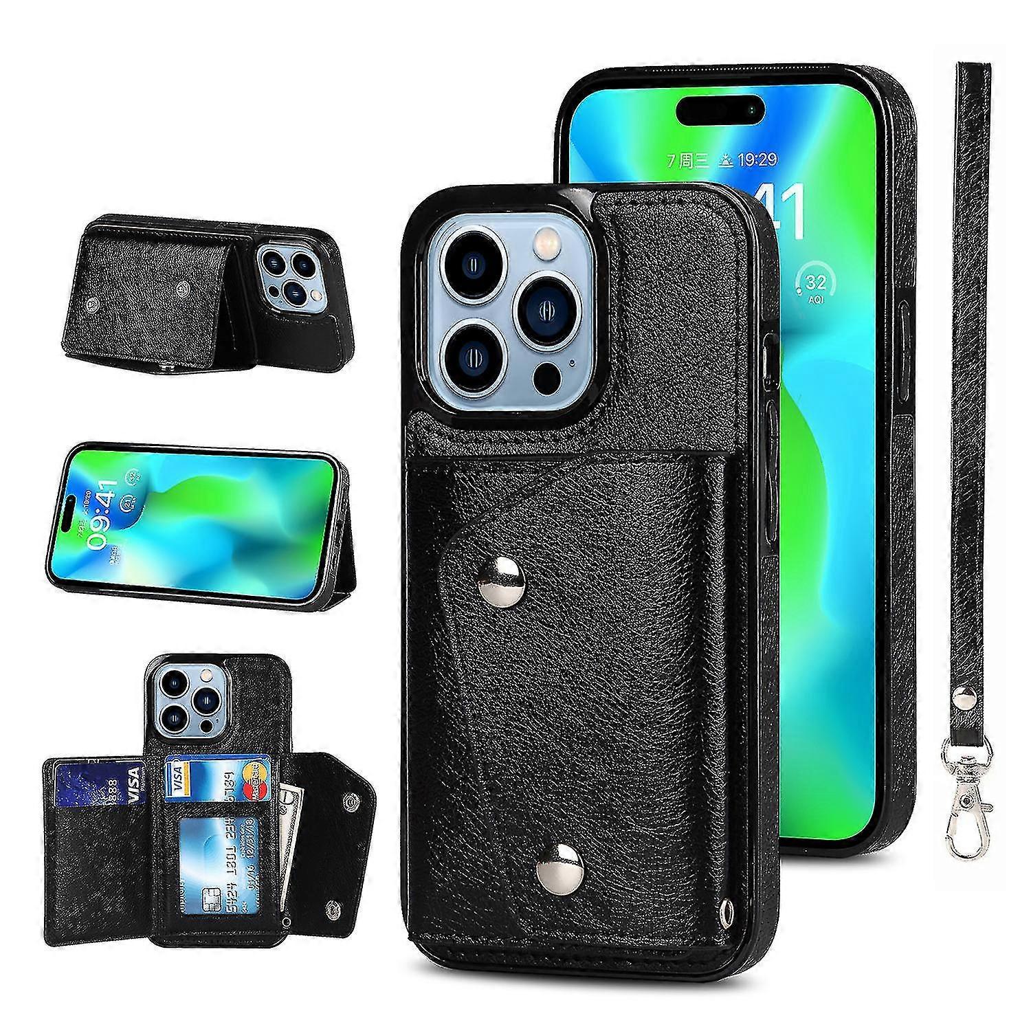 Handmade Pu Leather Case For Iphone 14 Pro With Card Holder, Wallet Function, Kickstand Function, Fall Protection