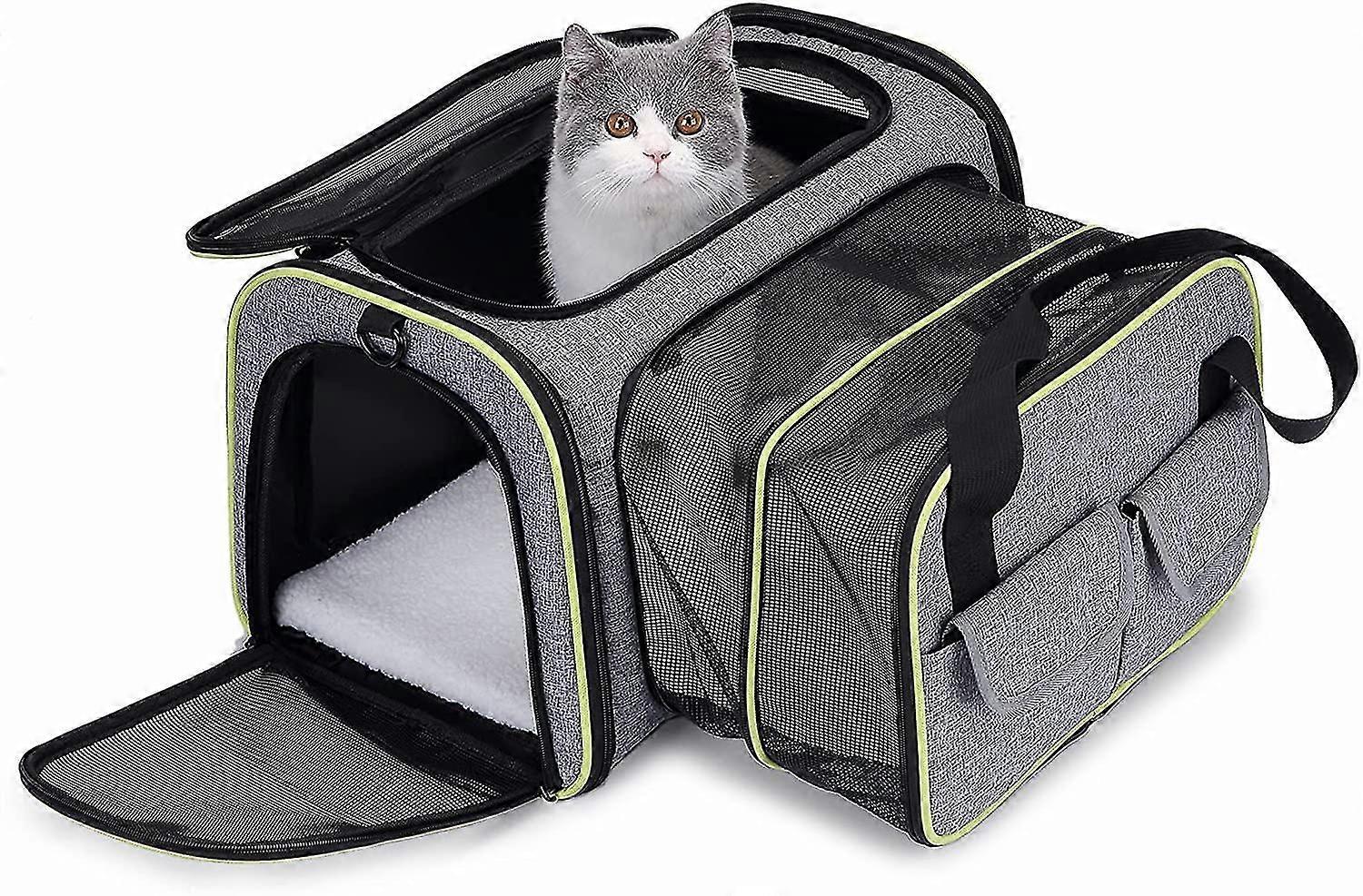 Cat Dog Carrier Bag, Expandable Carrier Bag For Cat Dog And Other Pets, Soft And Foldable With Wool Mat For Airplane/car/train Travel 44.5*40*28cm