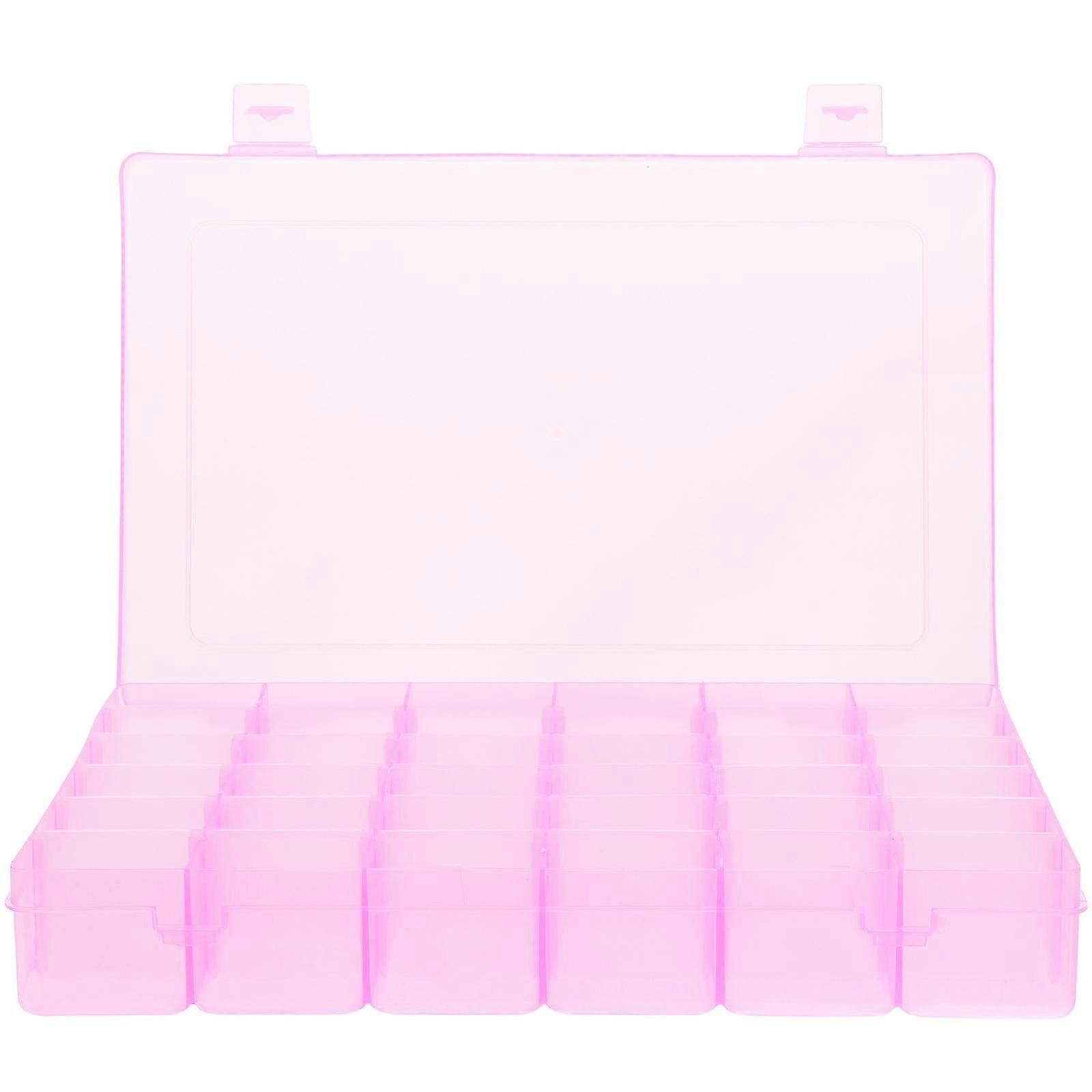 Portable 36-Grid Clear Hard Plastic Adjustable Jewelry Organizer Box Storage Container Case with Removable Dividers (Pink)