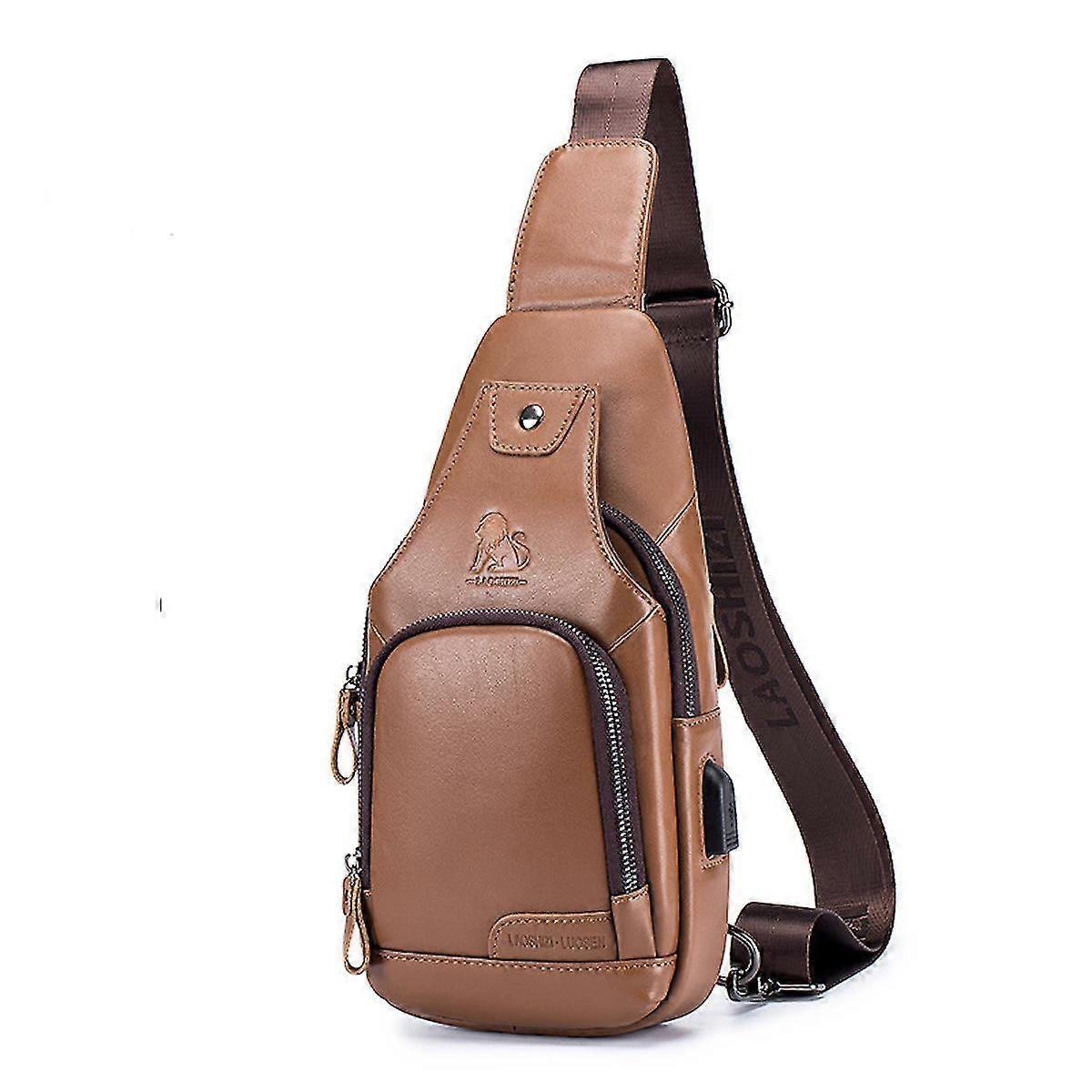 Men's Brown Sling Bag Genuine Leather Daypacks Business Water Resistant Casual Chest Bag For Travel-MXBC