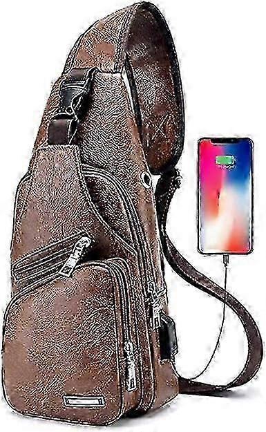 Men Sling Bag Small Leather Unbalance Chest Shoulder Crossbody Bag with USB Charging Port