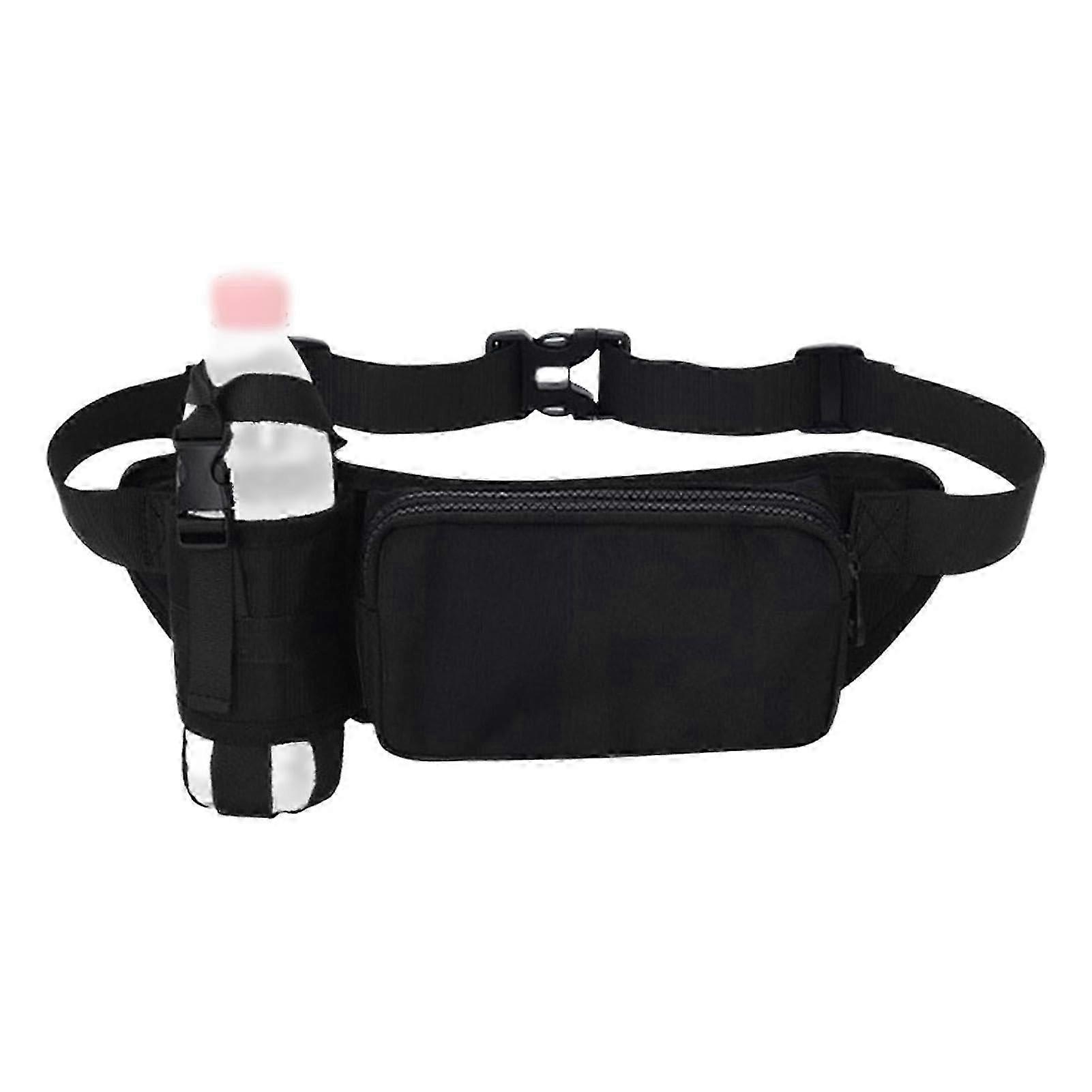 Belt Bag with Water Bottle Holder, Adjustable Waterproof Hydration Belt for Hiking, Running, black