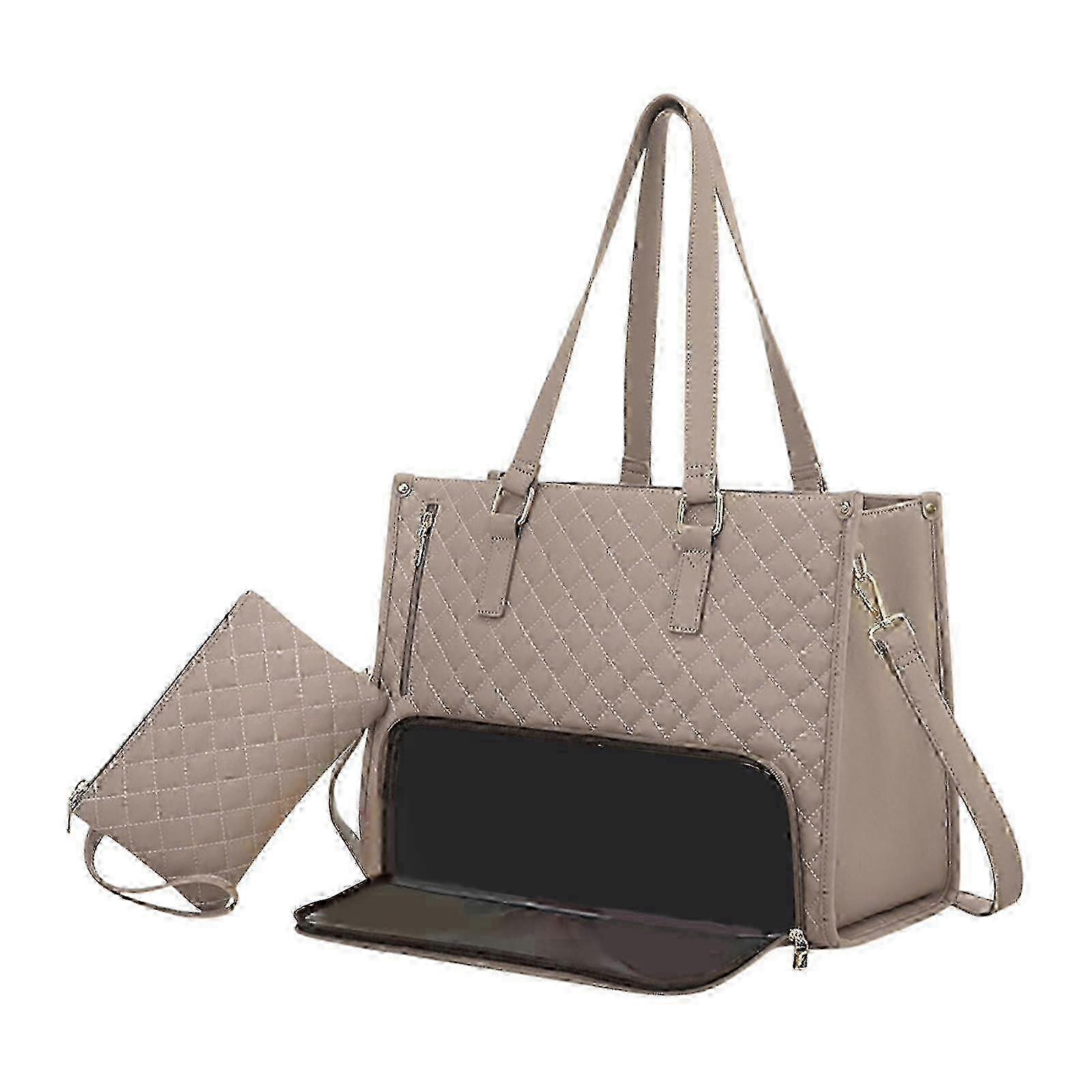 Insulation and Leakproof Design: This tote bag is designed to keep your meals fresh and drinks cold, with the ability to maintain food warmth for up to 5 hours and keep drinks chilled for up to 10 hours when used with an ice pack. Its insulated compartment ensures your meals are alway ready to enjoy Spacious and Organized Compartments: This bag offers ample space with separate compartments. The lower section is suitable for storing daily meals and fruits, while the upper compartment can accommodate a 15.6inch laptop, notebook, and stationery, keeping everything organized and easily accessible Multi Functionality as Lunch or Laptop Bag: Featuring a unique baffle design that protects food from being crushed by heavier items, this versatile bag can transform into a spacious laptop carrier by folding away the insulated layer when not carrying food Wallet Included: Comes with a stylish wallet designed for money, cards, and IDs, providing an organized solution that complements the bag perfectly for a seamless look Elegant Design for Various Occasions: Enhance your work attire with this chic quilted women's computer bag suitable for university, work, beach outings, picnics, camping trips, and more. It makes an ideal gift choice for Mother Day, birthdays, Valentine's Day or Christmas celebrations Specification: Material: PU Leather and Polyester Size Chart: 42.6cmx16.4cmx62.5cm/16.77inchx6.46inchx24.61inch Package Includes: 1 Womens Tote Bag Note: Please allow slightly errors 1-2cm/0.39-0.79inch differences due to manual measurement. Note: Due to the light and screen setting difference, the item's color may be slightly different from the pictures. Please allow slight dimension difference due to different manual measurement.