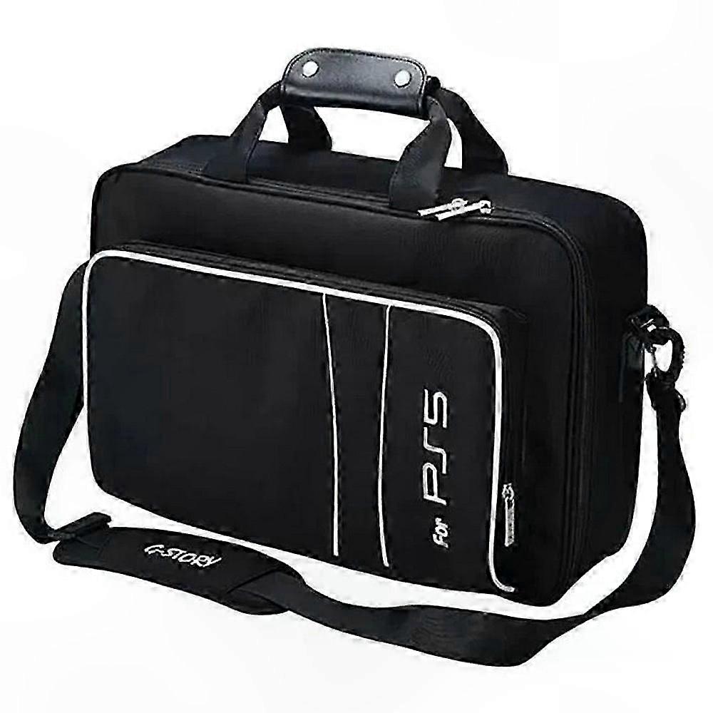 Product Features: Large capacity: Designed for storage and customization, this PlayStation 5 carrying case features a double-layer construction. The outer compartment fits PS5 controllers and small accessories such as HDMI cables, console cables, and other essential small items for easy access. The inner compartment accommodates the PlayStation 5 Console (Disc or Digital Edition), game cards, remote control, charging dock, and more. High-quality craftsmanship with premium zippers provides enhanced protection for your devices. Fully padded interior safeguards the console and accessories from impact and compression. Adjustable shoulder strap with a widened padded section reduces shoulder strain, and a convenient top handle offers additional carrying options. Front pocket includes elastic straps and small insert pockets to securely hold controllers, power cords, USB cables, and other accessories. Product Specification: Material: Nylon Function: Scratch-resistant, shockproof, semi-waterproof, dustproof Size: 35 x 13 x 34 cm Package Content: 1 x Game Case