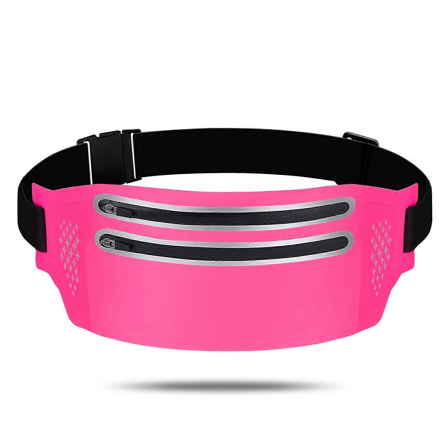 Waterproof close-fitting ultra-thin waist bag outdoor double zipper sports running mobile phone waist bag (rose red) 1 piece