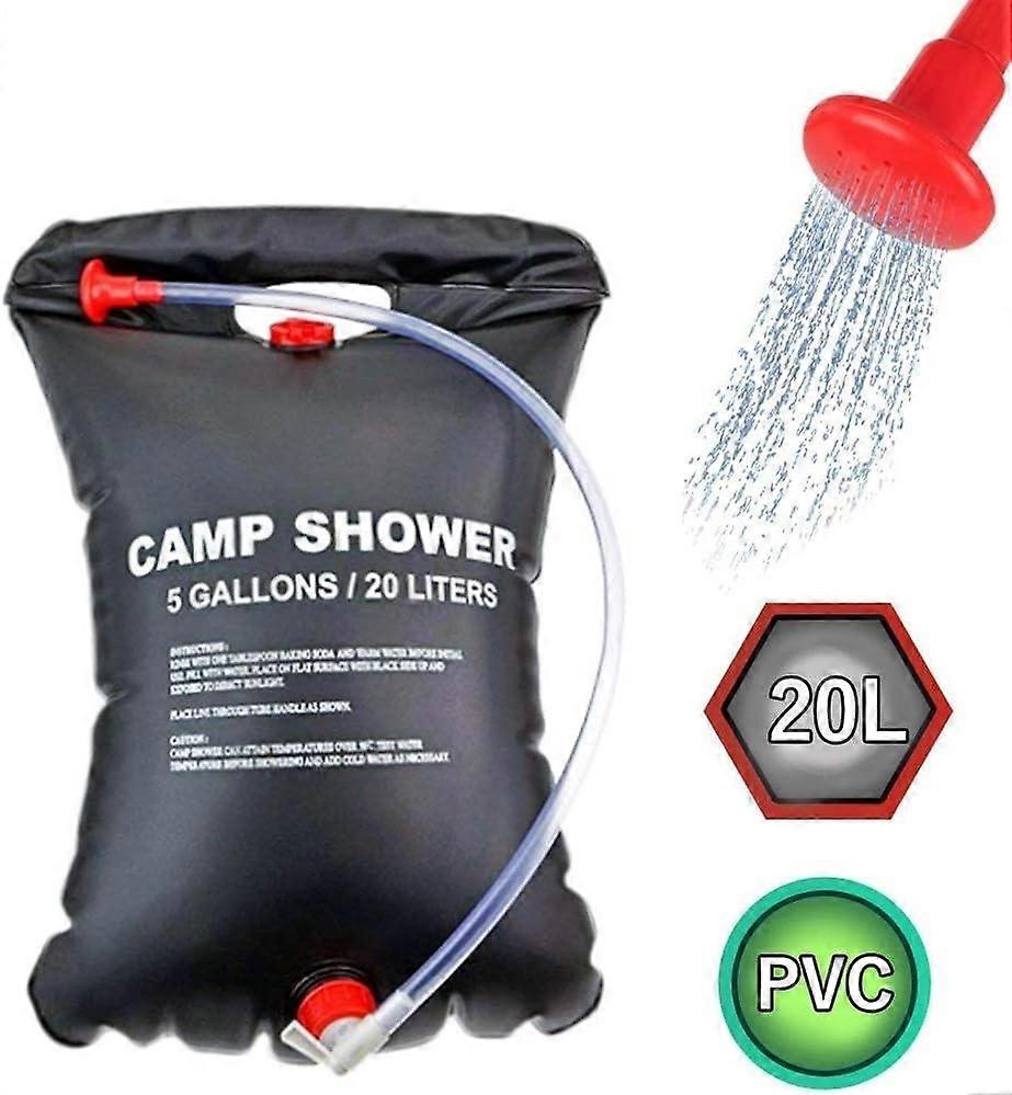 Garden Shower Solar Shower Bag 20L Portable Solar Heated Travel Hot Water with 45°C Detachable Hose