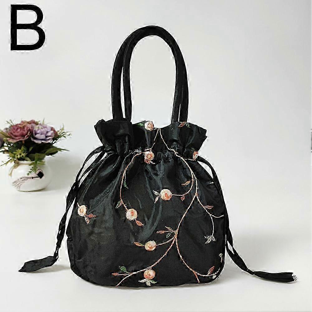 Small Embroidered Bucket Bag for Women, Drawstring Closure, Ethnic Design Handbag