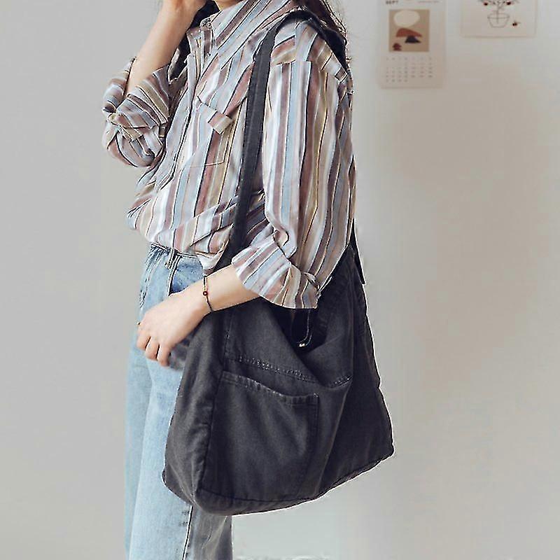 Denim Large Capacity Canvas Messenger Bag Women's Casual Shoulder Bag,1pc-black