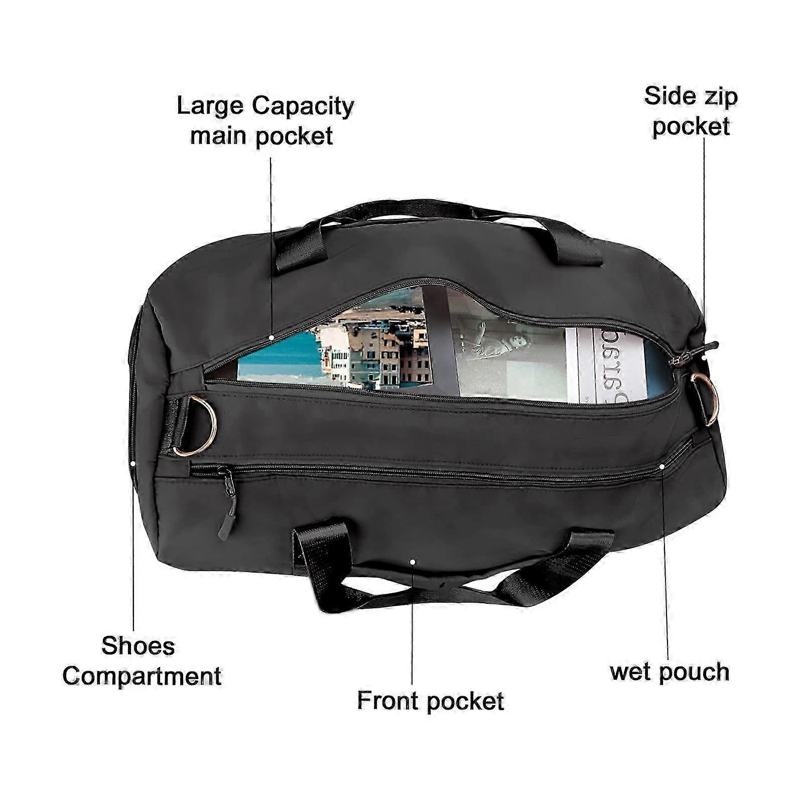 Waterproof Gym Bag with Wet Pocket - Weekend Overnight Tote for Men and Women (Black)