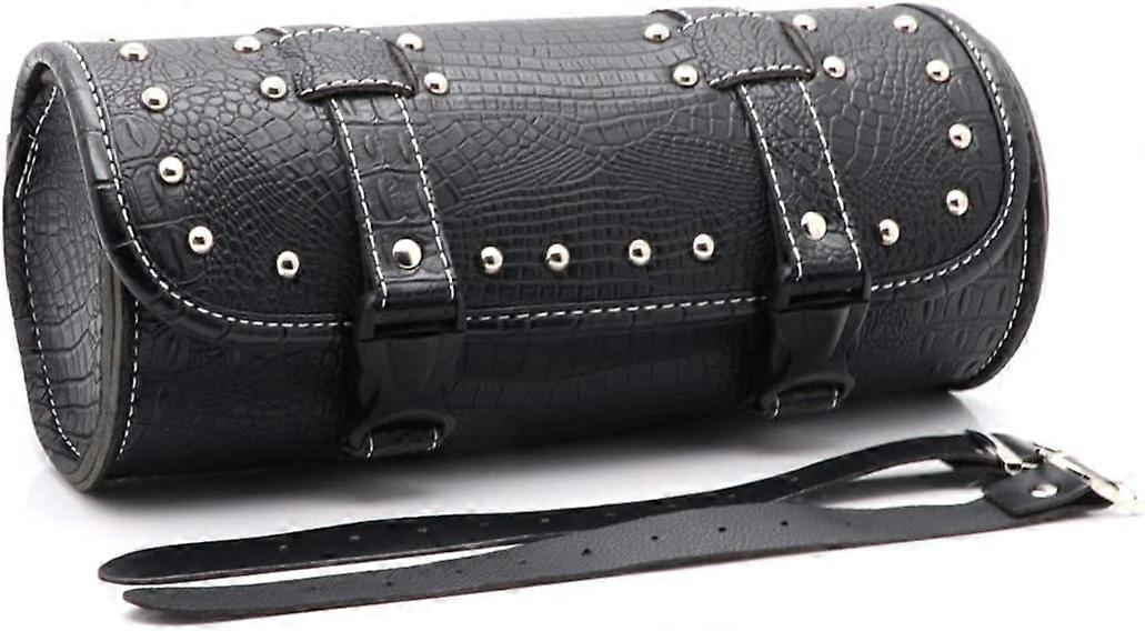 Motorcycle Saddlebag Universal Waterproof Tool Bag Fastening Strap Round Storage Bag - Black