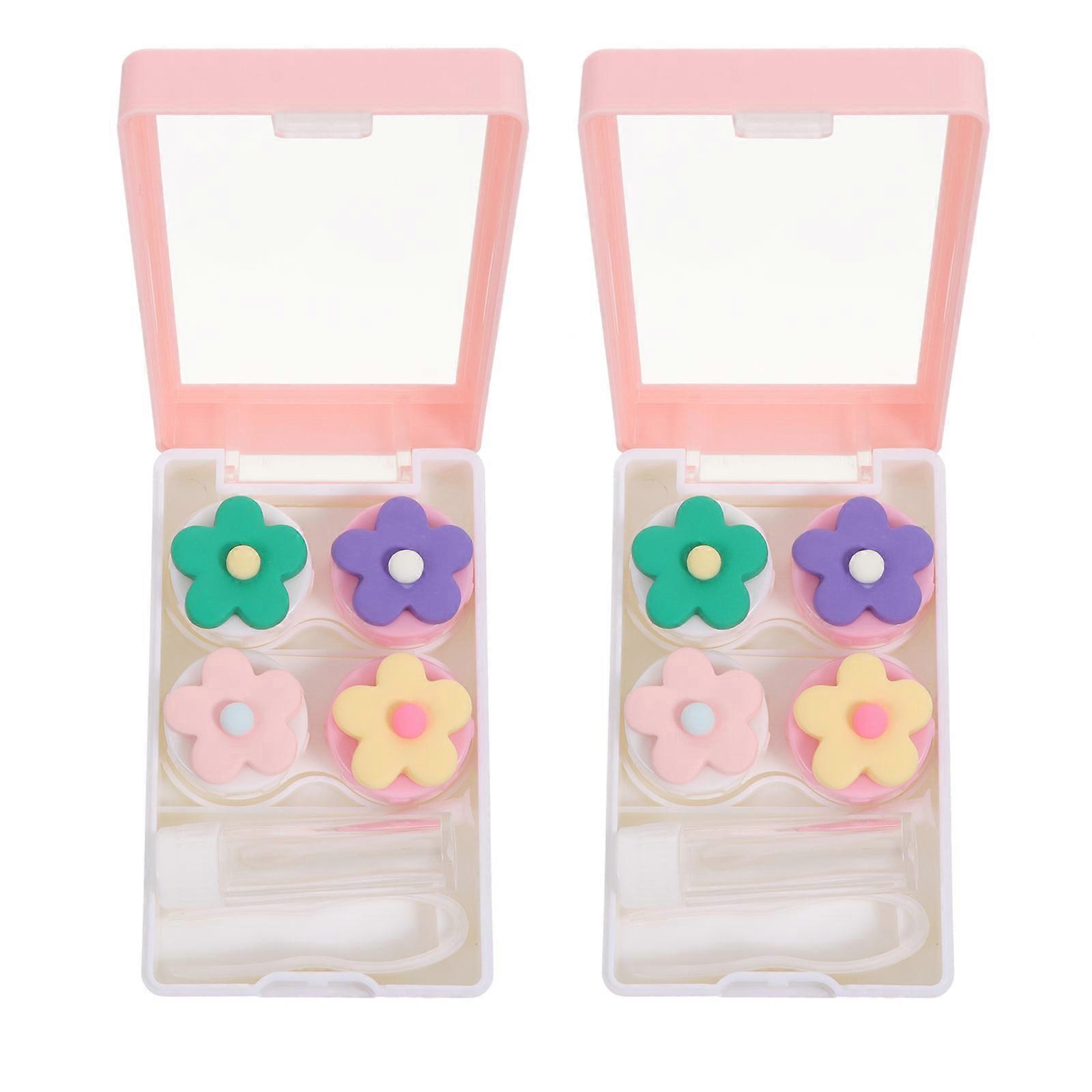 Portable Lens Travel Case Prevent Drying Out Rectangular Pink 9.5x6cm 2Pcs