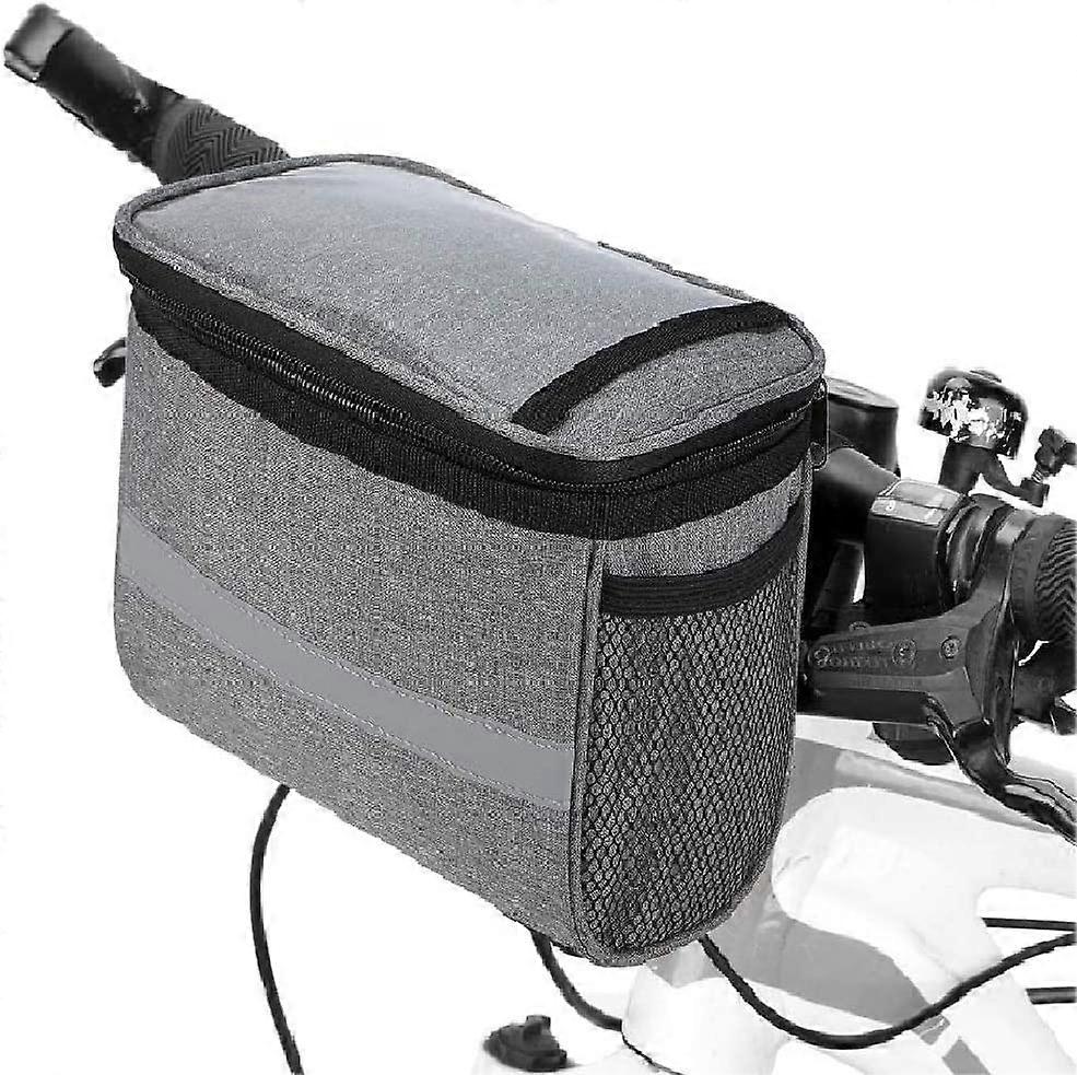 Bicycle Basket Bag with Reflective Strips Bicycle Handlebar Bag Bicycle Bag Bicycle Front Tube Bag Bicycle Backpack, 5L, Grey