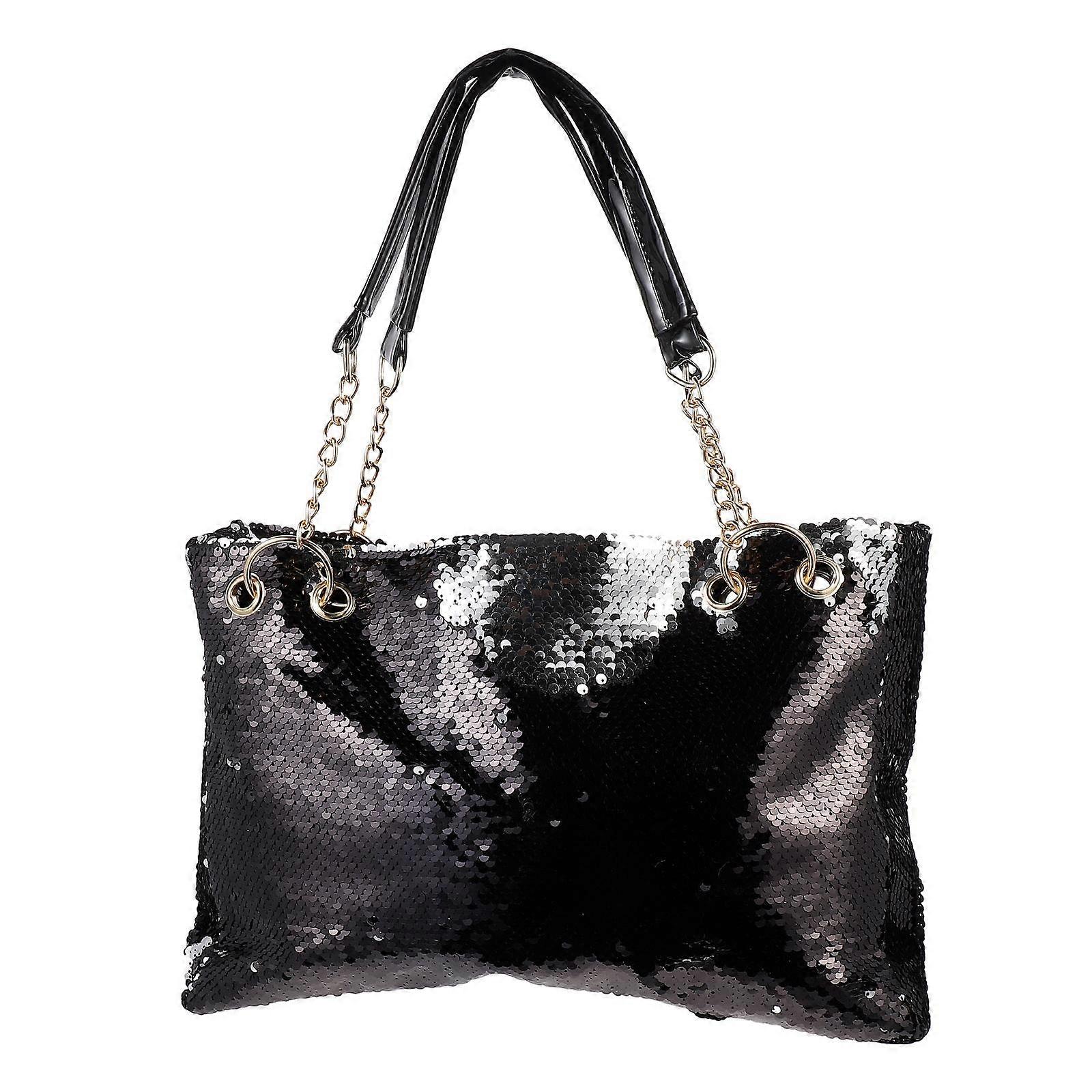 Sequin Zipper Chain Bag Glitter Tote Handbag Women Yoga Black 40 x 22 x 7 cm Sequins 1 Pcs