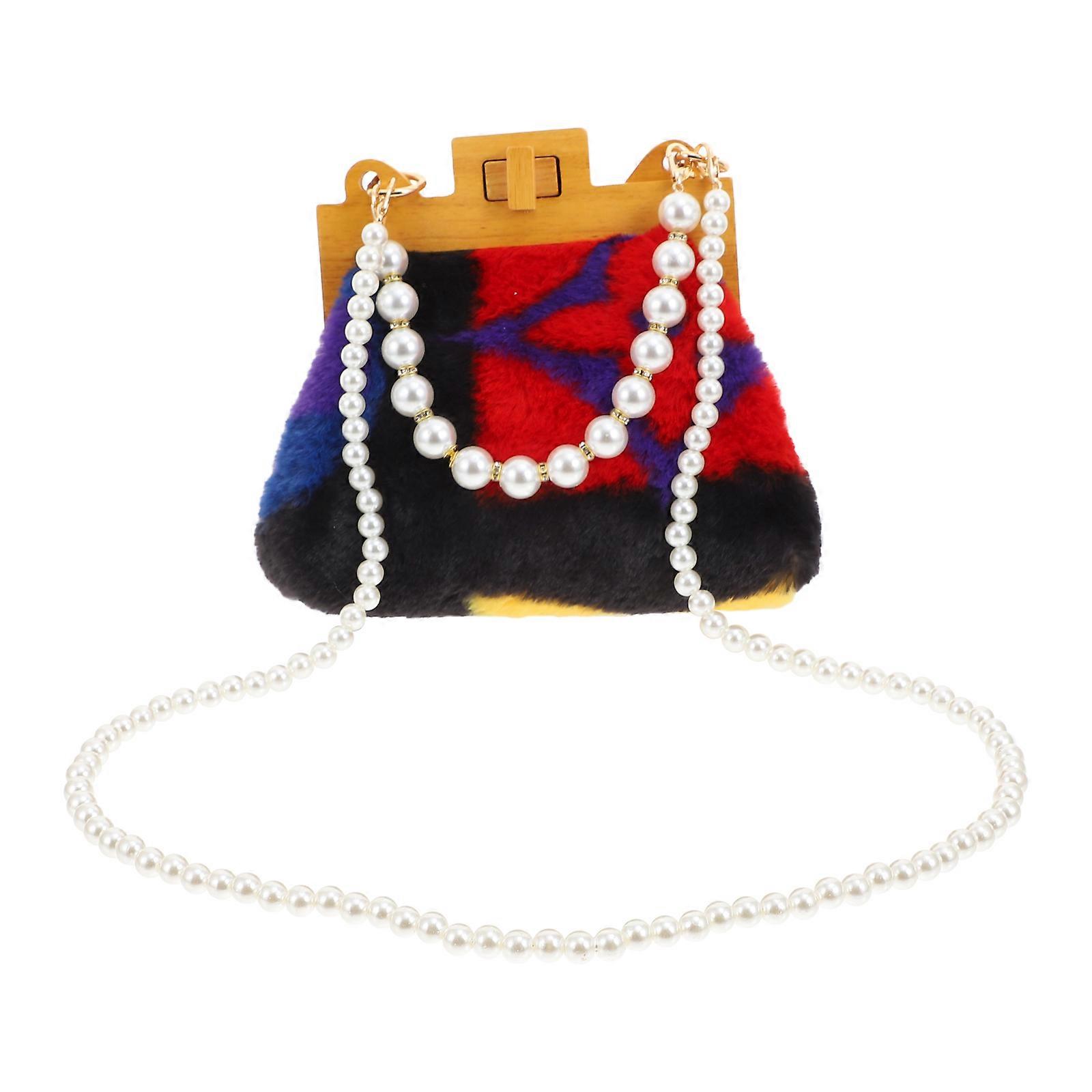 Beaded Chain Bag Delicate Plush Handbag For Shopping Random Color 20.00X17.00X10.00CM Carry Wallet 1Pcs