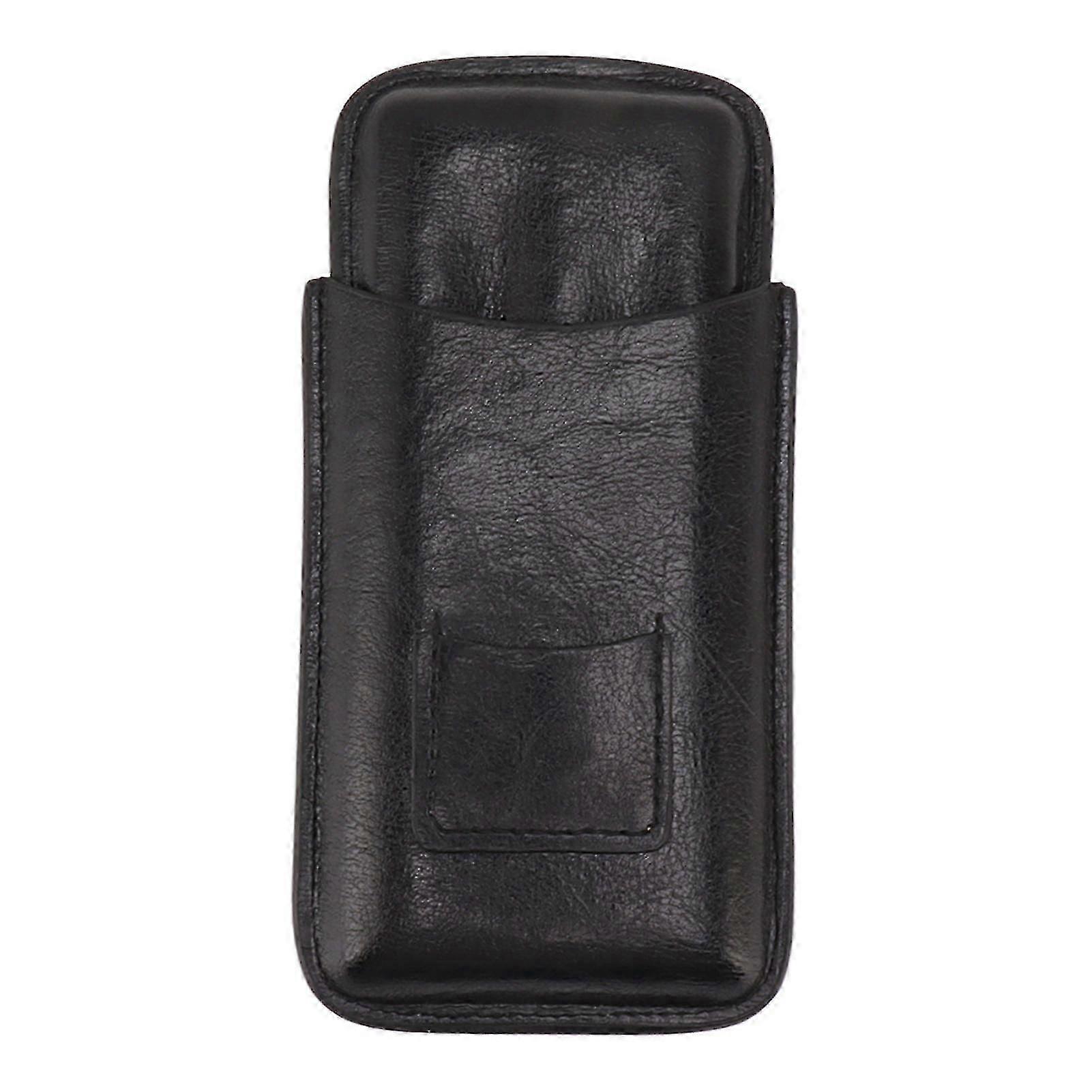 Leather Cigar Case Portable 3 Finger Cigar Humidor Carrying Case with Cutter Pocket for Cigar Lovers Black