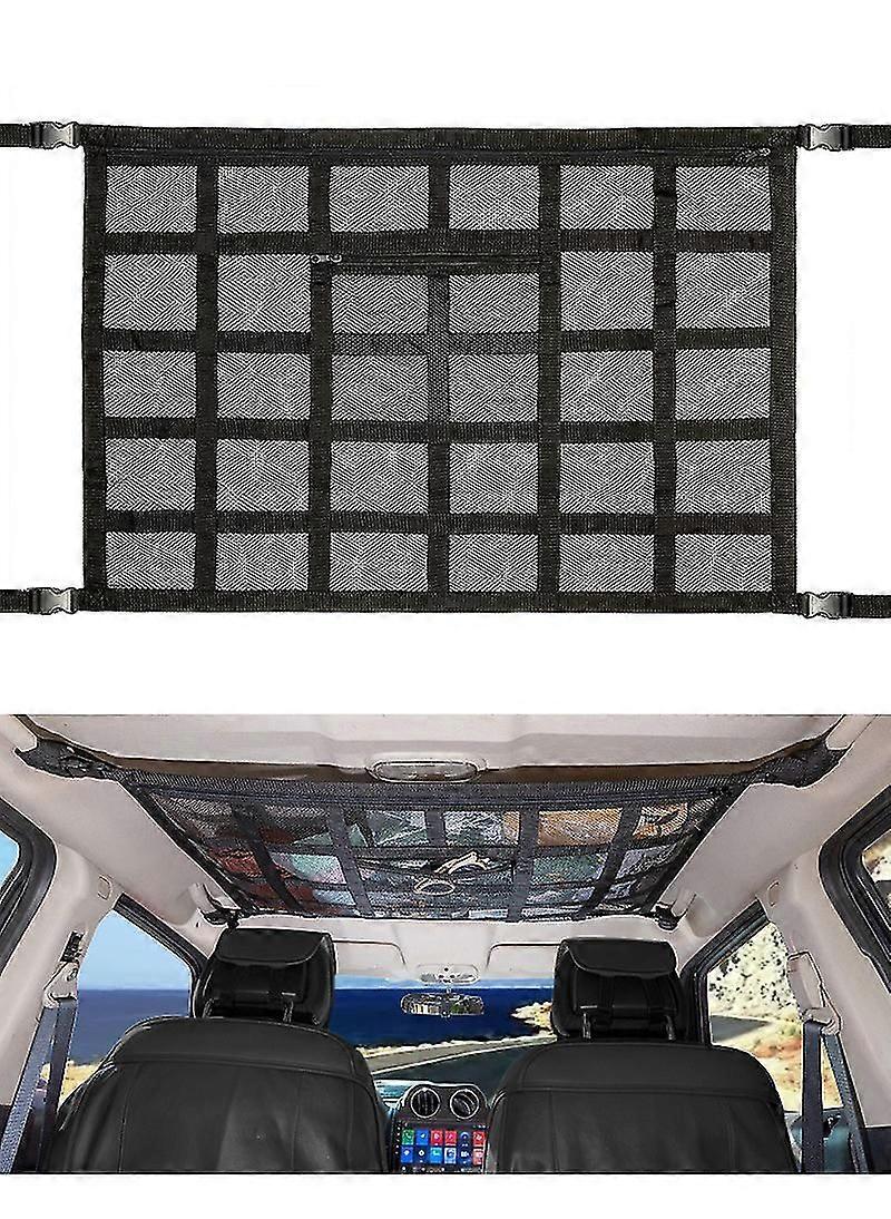 Car Roof Luggage Net Bag,overhead Organizer For Long Drives,hanging Mesh Storage For Suvs,minivans,trucks,black 2.95*2.1ft