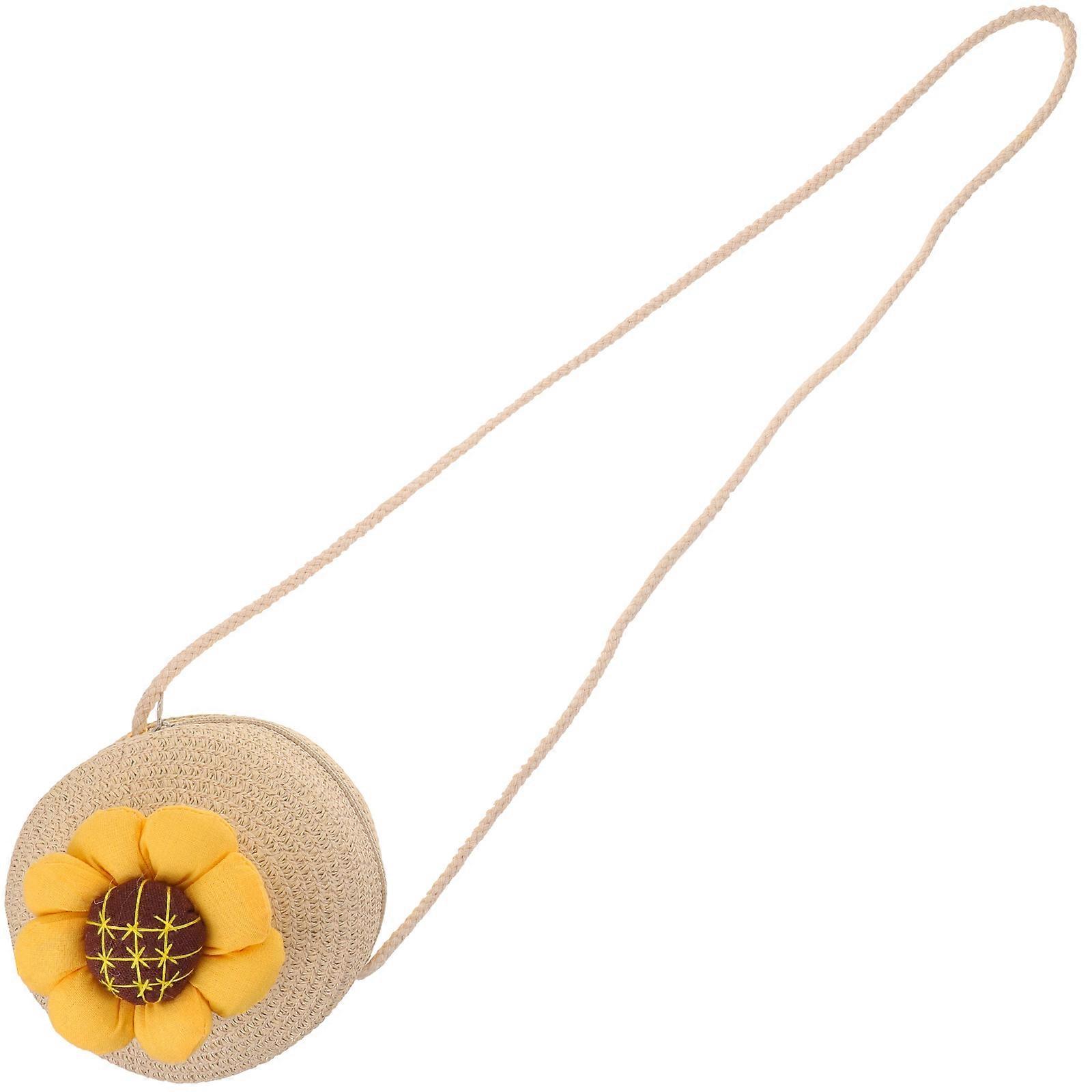 Small Straw Purse Toddler Purse Crossbody Bag for Children Round Shape Beige Color 1Pcs