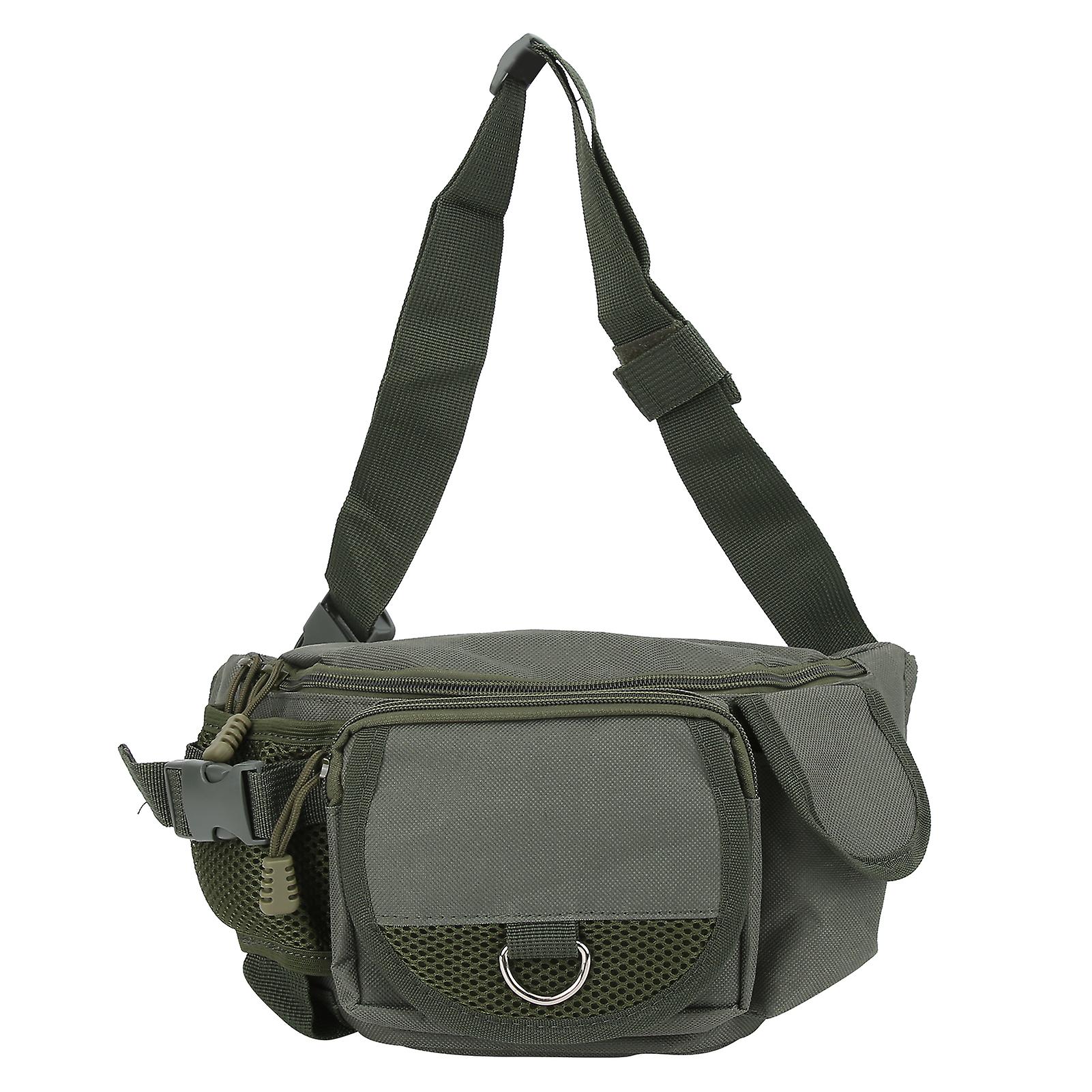 Fishing Bag Portable Polyester Storage Pack Bumbag Adjustable for Outdoor Hiking ClimbingMilitary Green