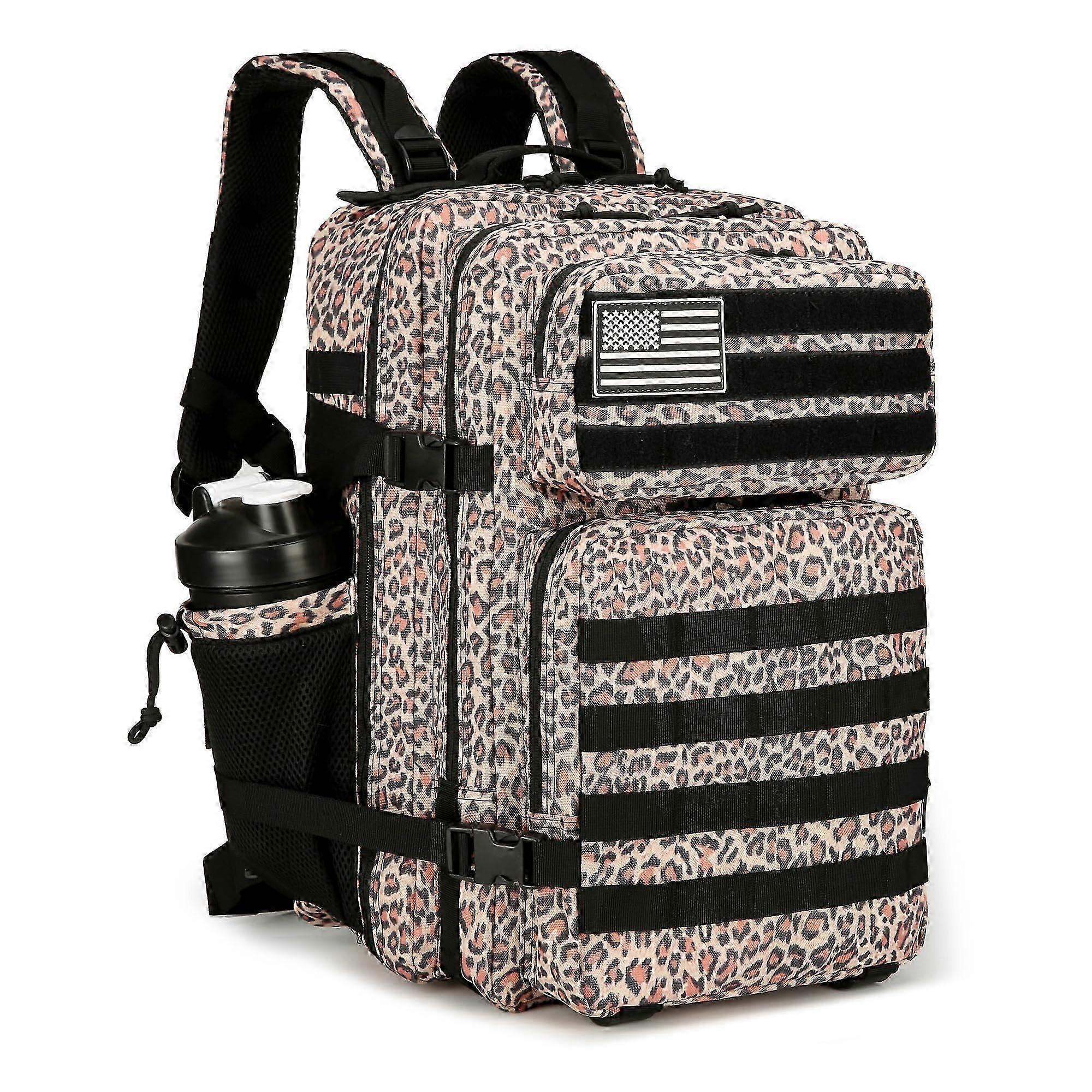 Military 45L Tactical Assault Backpack, Molle Waterproof 3-Day Pack, Amber Leopard Rucksack for Outdoor Gear