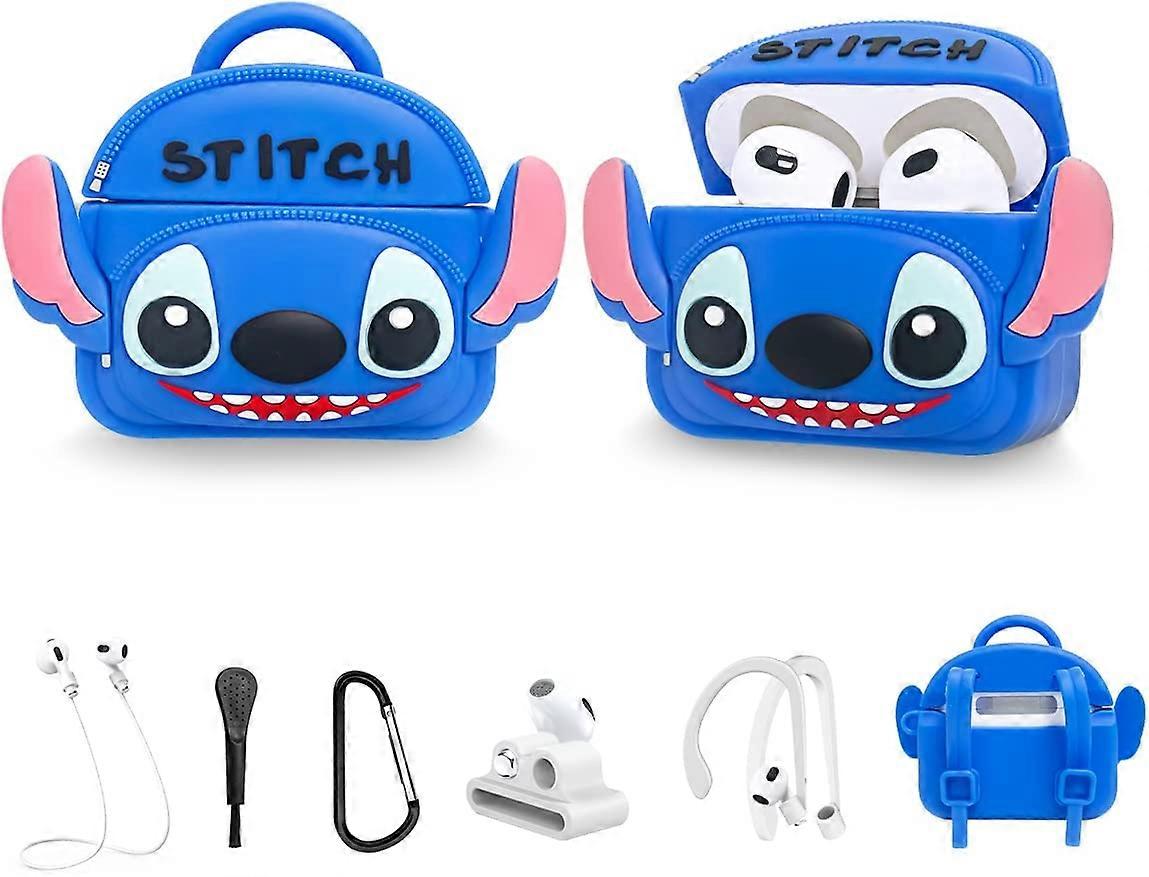 Cute Stitch Backpack Airpods 3rd Generation(2021) Case, 6 in 1 Airpods 3 Silicone Accessories Cover, Fashion Funny Cartoon Character Shoulder Bag Desi