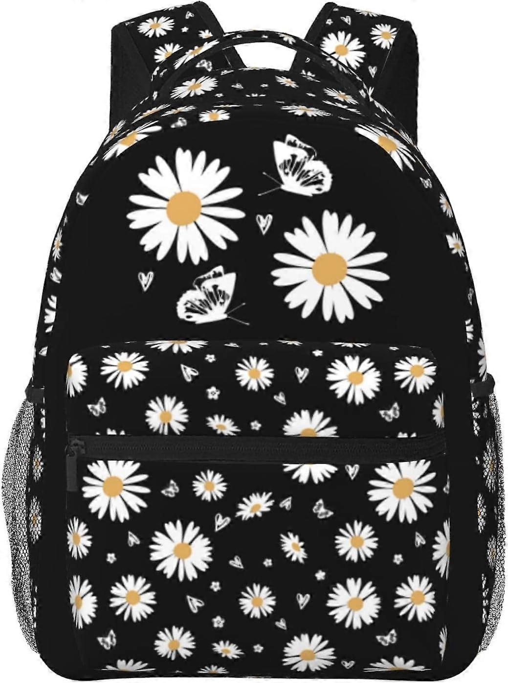 Daisy-Print School Backpack Daisy Flower Bookbag Girls Backpack Daisy Black Daisy Backpack Girls Daisy Backpack Flower Print Backpack For Girls Elemen