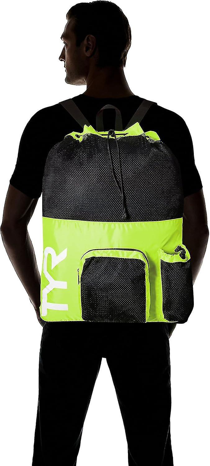Yellow Big Mesh Mummy Backpack For Wet Swimming, Gym, And Workout Gear