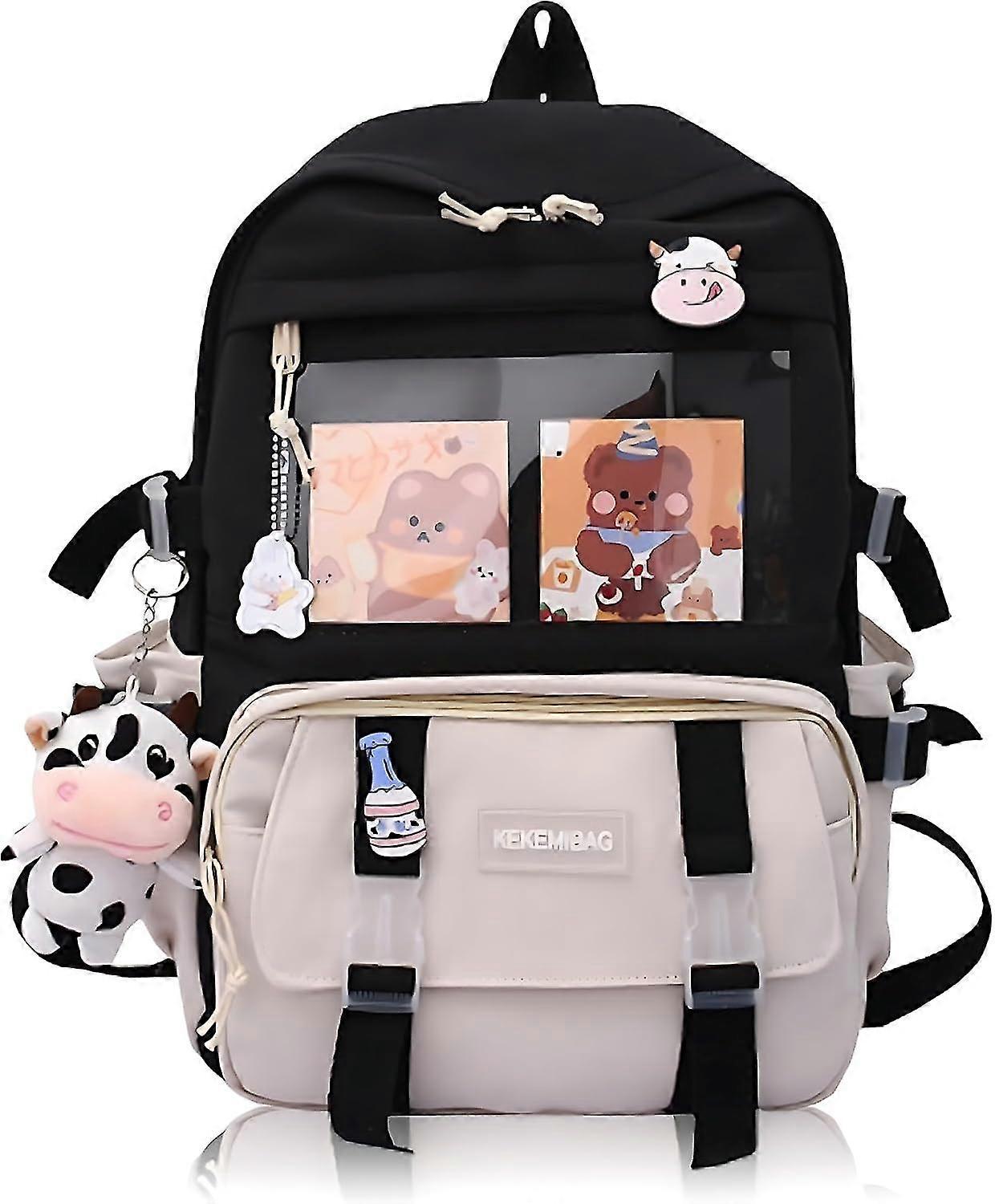 Kawaii Backpack with Kawaii Pin and Accessories, Cute Kawaii Backpack Large Capacity Canvas Backpacks, Multi Pocket Rucksack for Teen Girls Cute Kawai