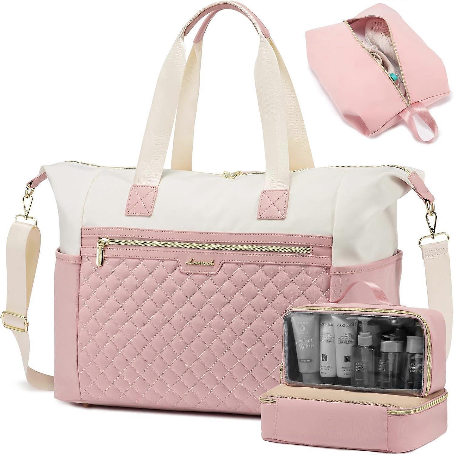 Women's Weekender Bag, 4-Piece Travel Luggage Set with Shoe Bag, Toiletry Bag and Clothing Organizer, Carry-On Luggage with Wet Bag, Pink