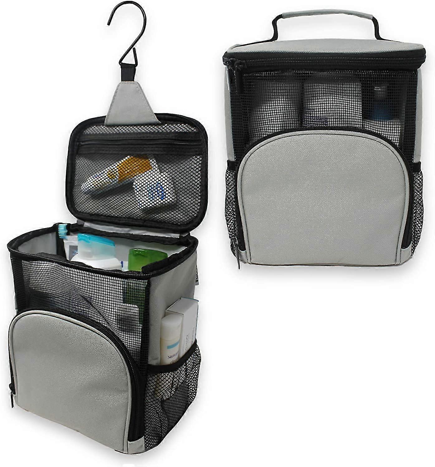 | PRACTICAL DESIGN | Newly designed hanging shower caddy, large enough to fit all of your toiletries, compact enough for traveling. New large metal hook | SIZE and CAPACITY | 9.75"H x 8.35"L x 5.75"W holds up to 4 full size bottles of shampoo, conditioner, lotion, and body wash and more | STYLISH AND DURABLE | Strong 600D polyester with handle and premium quality zippers holds up under stress with a choice of 5 stylish colors | QUALITY ORGANIZER | Foldable, quick drying with mesh for ventilation. Front zippered pouch, 2 side pockets and additional organizers inside | MOBILITY | Great traveling accessory for road trips, gym, and camping. Sturdy, small, portable. Pack and Go.