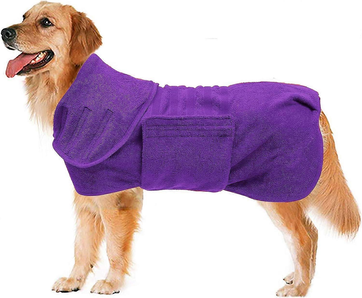 Super Absorbent Microfiber Dog Bathrobe Dog Quick Dry Bag with Stretchy Belt Pet Drying Coat Suitable for Showering Swimming -Purple-XL
