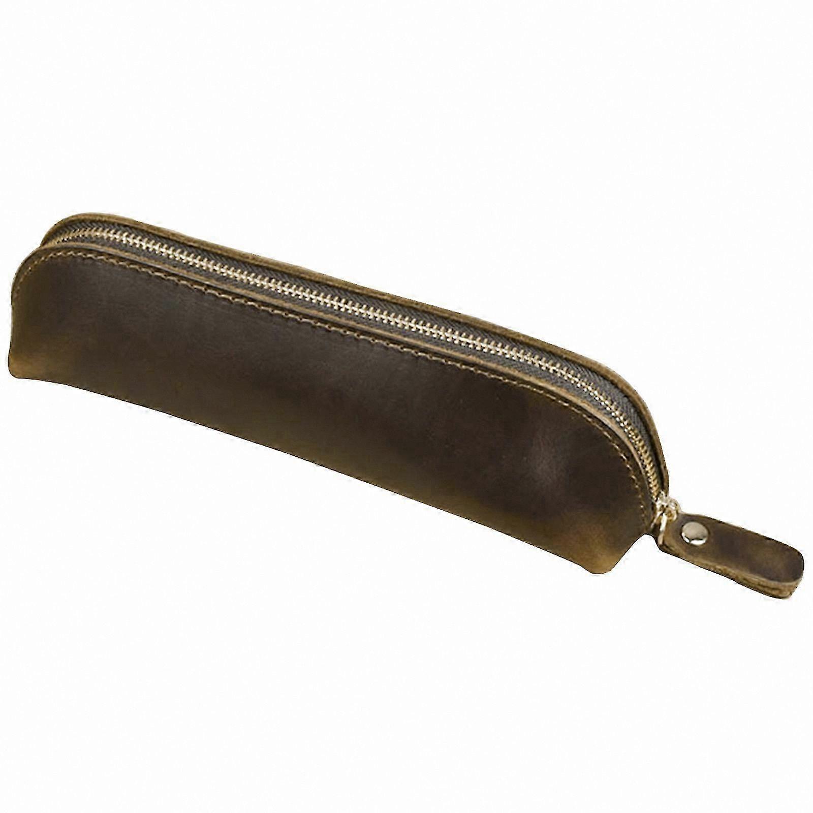 Handmade Zippered Pen Pouch Genuine Leather Stationery Bag for Ballpoint Pens Markers and Erasers Portable Writing Tool Organizer