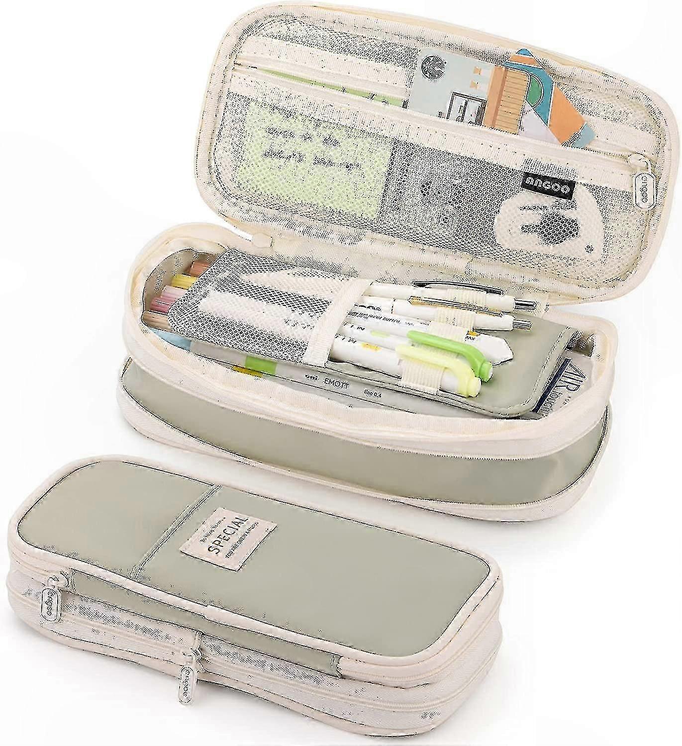 Spacious Stationery Pouch for Girls - Large Pen and Pencil Holder with Zippered Closure in Green