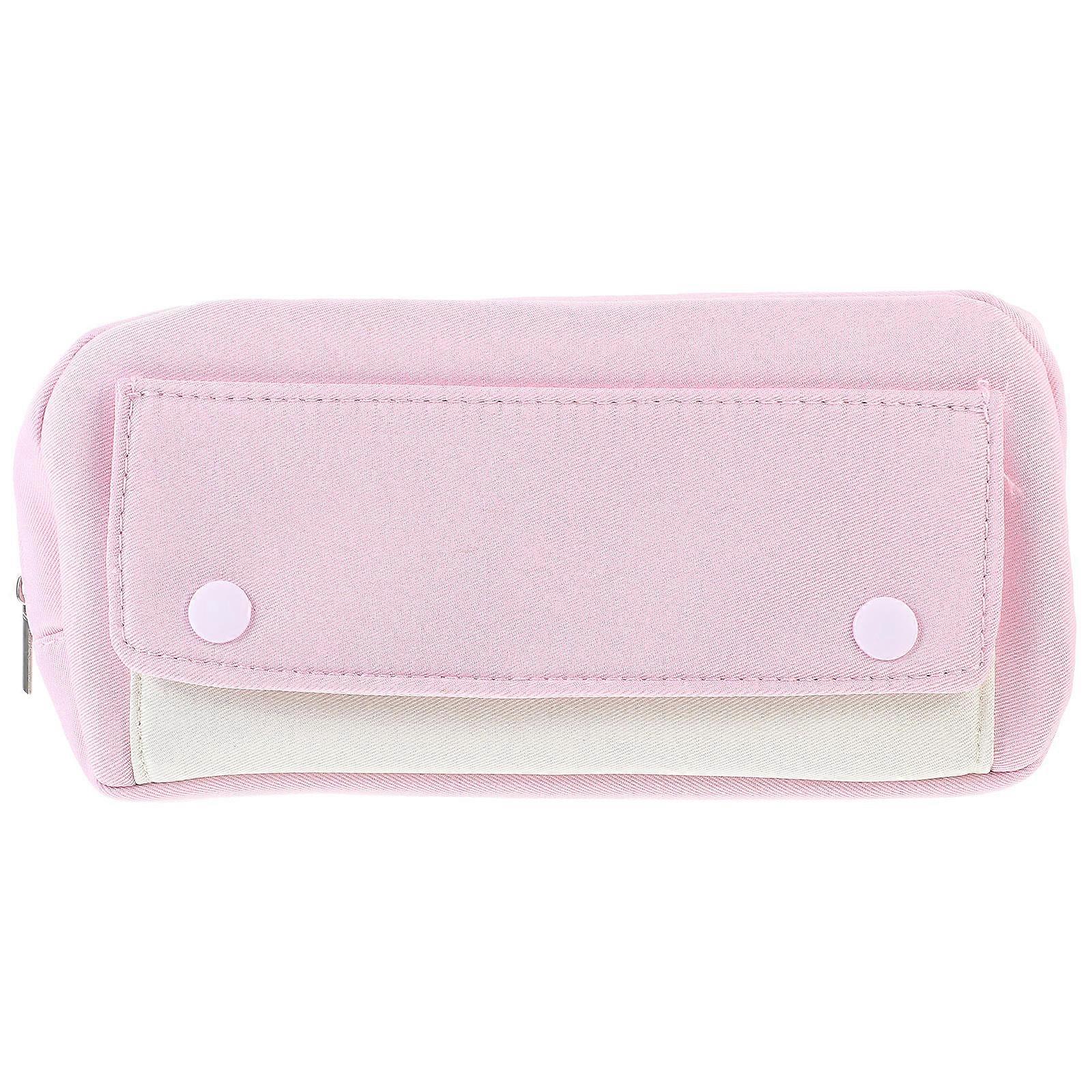 Polyester Pencil Bag Pen Zipper Bag Rectangular Pink 20X9.5cm For Daily Life Office Workers 1Pack