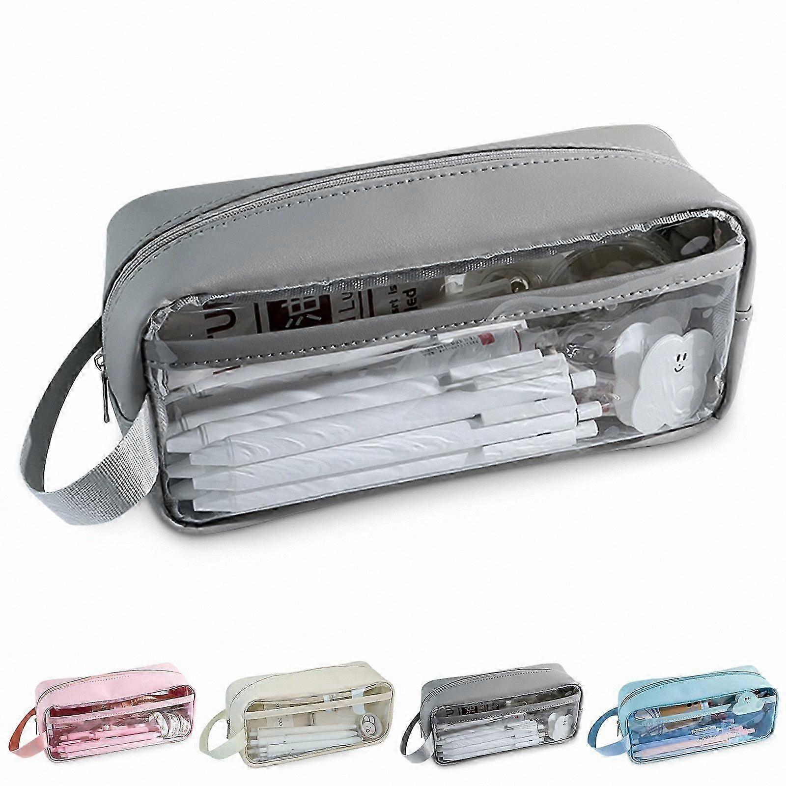Transparent Pencil Pouch, Waterproof Zippered Storage Bag for Toiletries, Travel Makeup Cosmetic Organizer (Grey)
