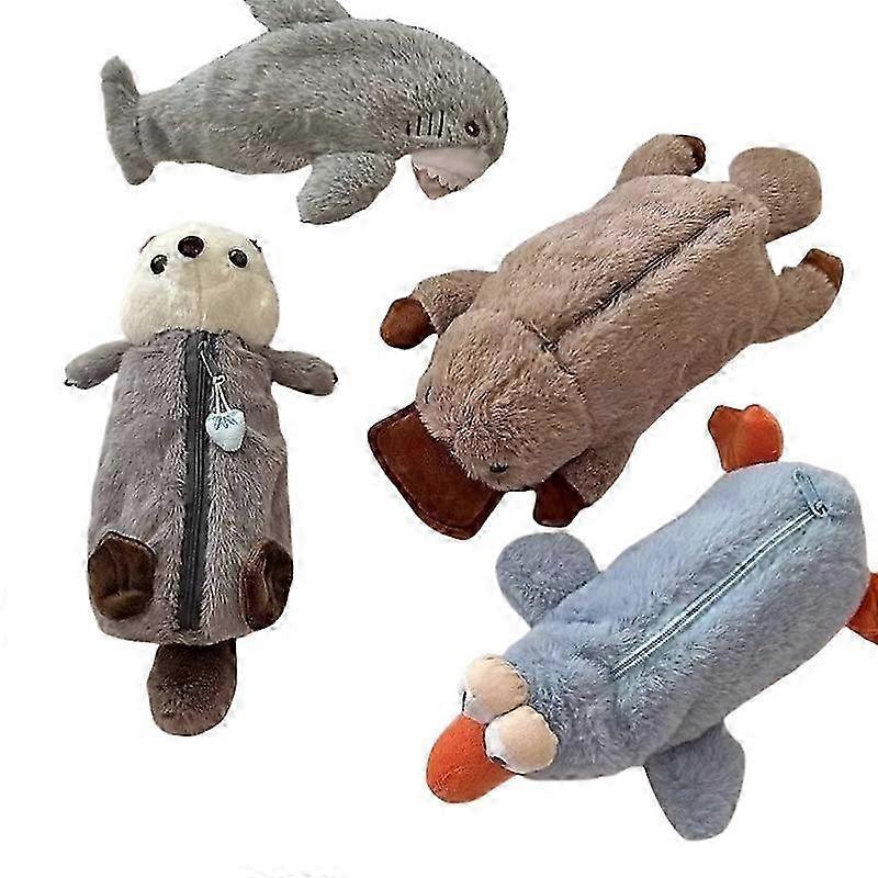 Small Pencil Pouch Plush Fuzzy Beaver Cute Case Box Holder Animal Organizer Bag