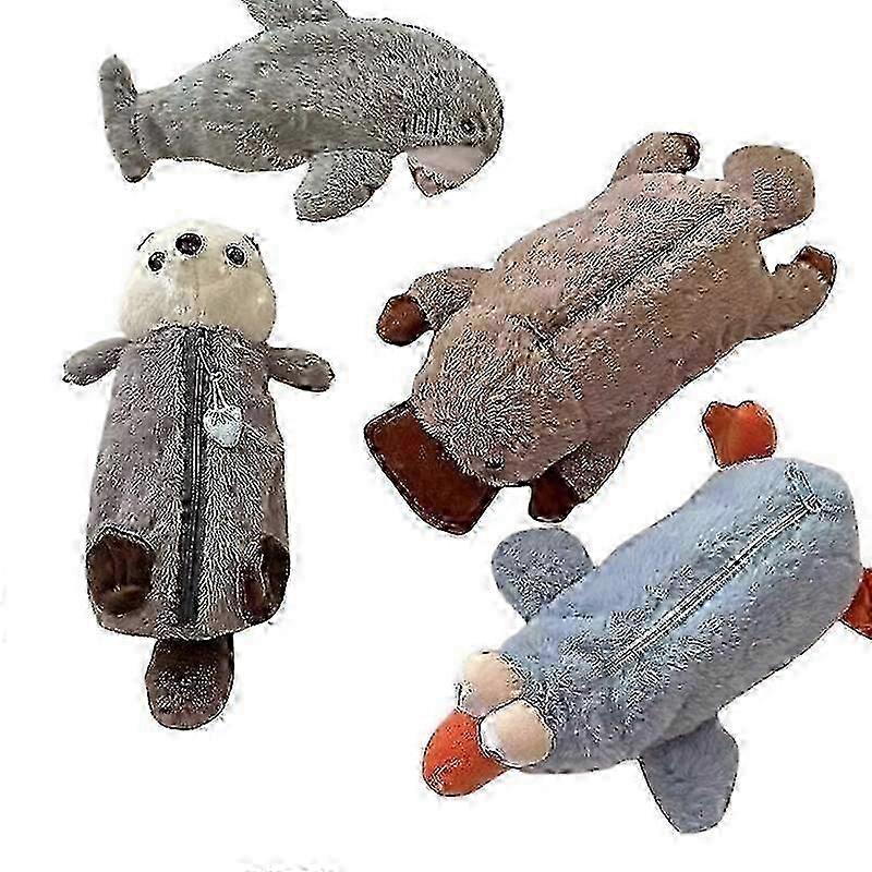Small Pencil Pouch Plush Fuzzy Beaver Cute Case Box Holder Animal Organizer Bag