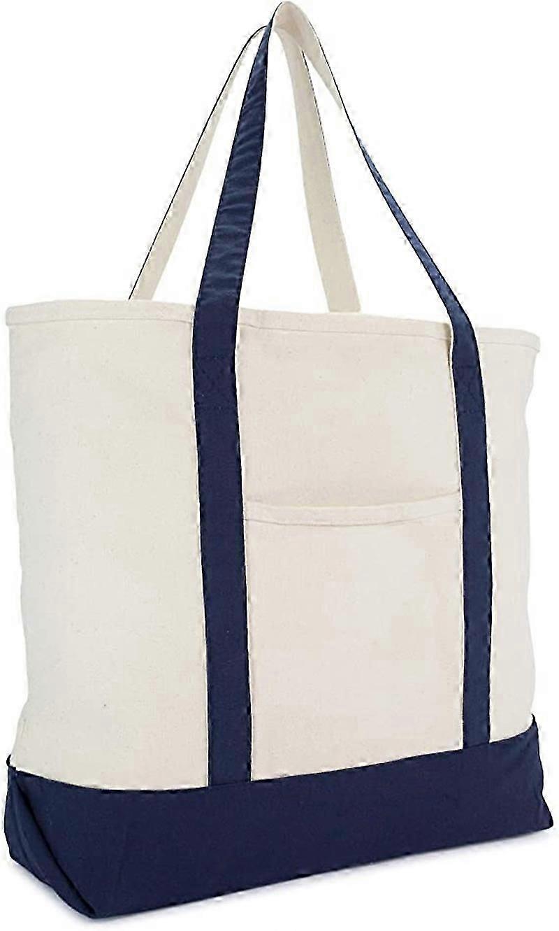 Eco-Friendly Canvas Bag 22" Heavy Duty Cotton Canvas Tote (Zipper) - Navy Blue