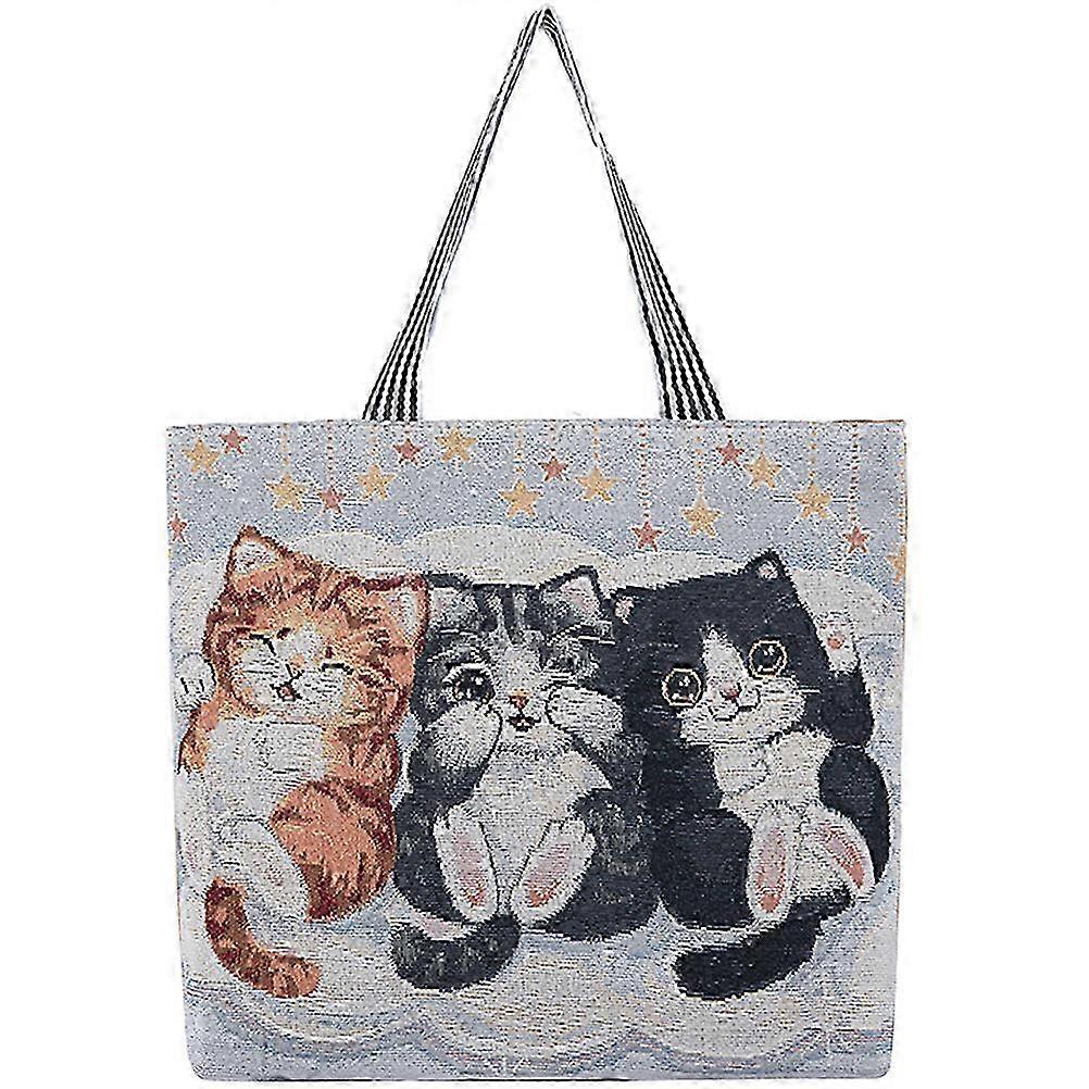Embroidered Cat Shoulder Bag Decorative Students Single Shoulder Bag Large Tote Bag