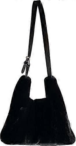 Plush Shoulder Bag Soft Fluffy Tote Bag Faux Fur Crossbody Bag Adjustable Shoulder Strapblack-MXBC