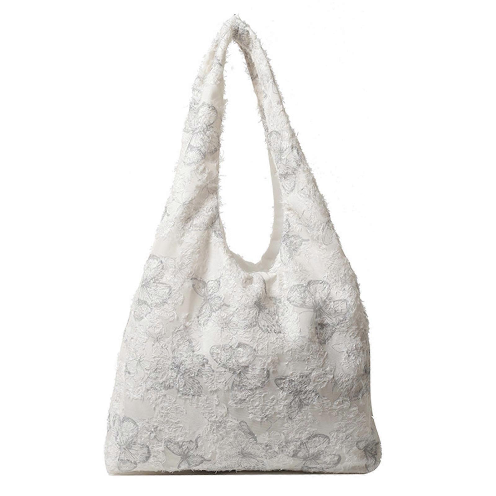 Aesthetic Butterfly Print Shoulder Bag Large Capacity Retro Tassels Texture Vest Bag Outdoor Casual Shopping Handbag Gray