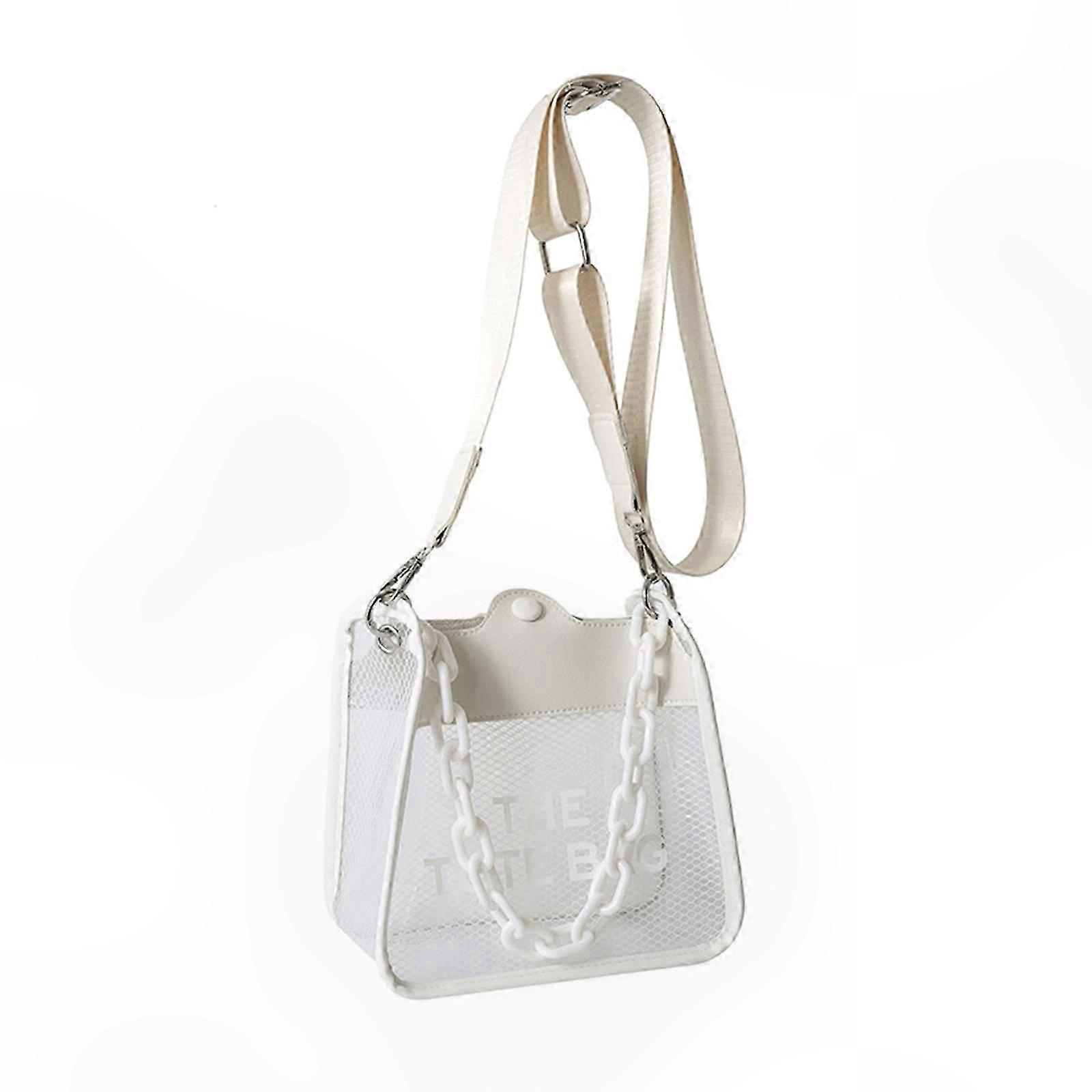 Transparent Shoulder Bag PVC Crossbody Bags for Women Vintage Multi-function Messenger Purse with Detachable Strap Pink